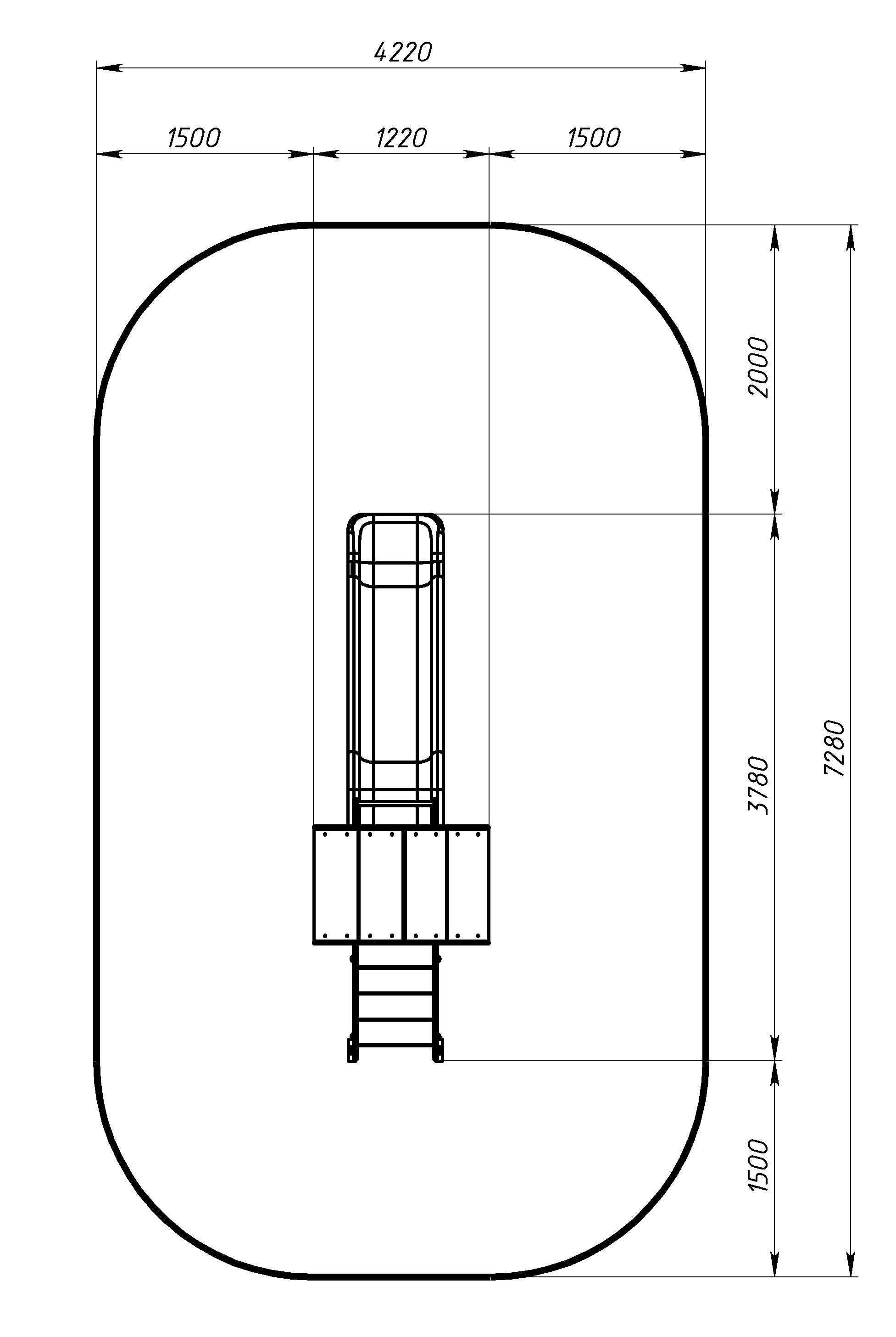 Зона безопасности, мм: 7280х4220