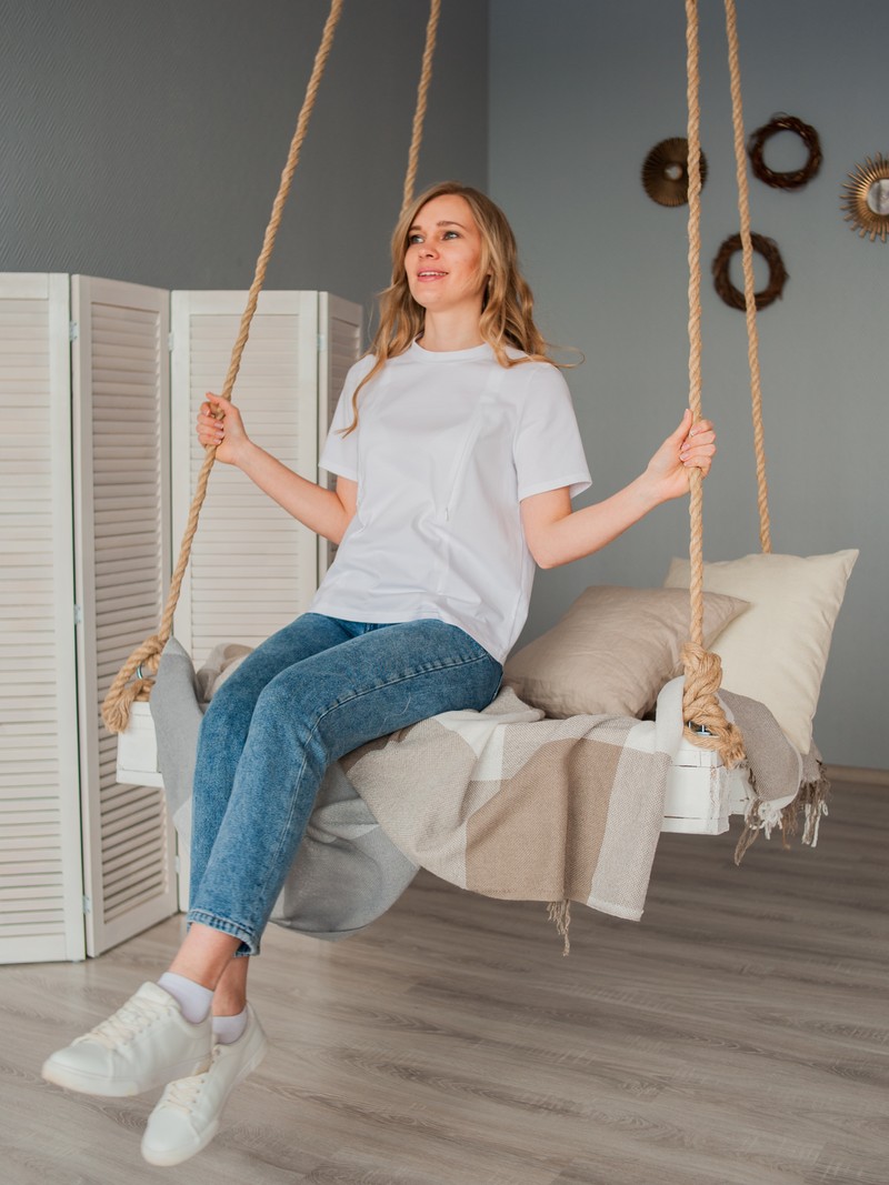 Базовая футболка в трех цветах: белый, пудровый, изумрудный.. Подходит для беременных и кормящих. Превосходное качество пошива и ткани. Состав 95% хлопок 5% эластан.