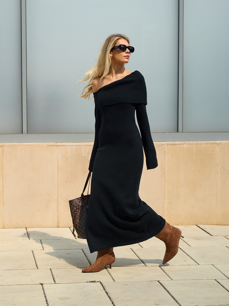 Вязаное платье макси с открытыми плечами от SOLE — это must-have для ваших осенне-зимних коллекций: высокая маржинальность, коммерческий успех и положительные отзывы клиентов гарантированы!
