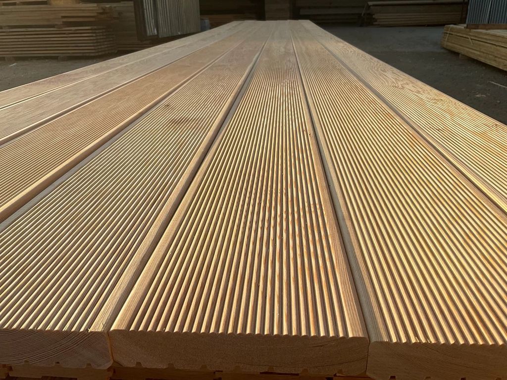 Чтобы купить Террасная доска 27х143х3000 мм, хвоя 1 сорт, DIN 68-126⁄86 оптом по цене 37000 руб., свяжитесь с поставщиком. Компания поставщик — Лесоперерабатывающий комбинат Спецлес (ООО «Лесоперерабатывающий комбинат Спецлес») из города Санкт-Петербург. Доставка возможна самовывоз, транспортной компанией, авиатранспортом, железной дорогой. Способы оплаты: наличными, безналичная оплата.