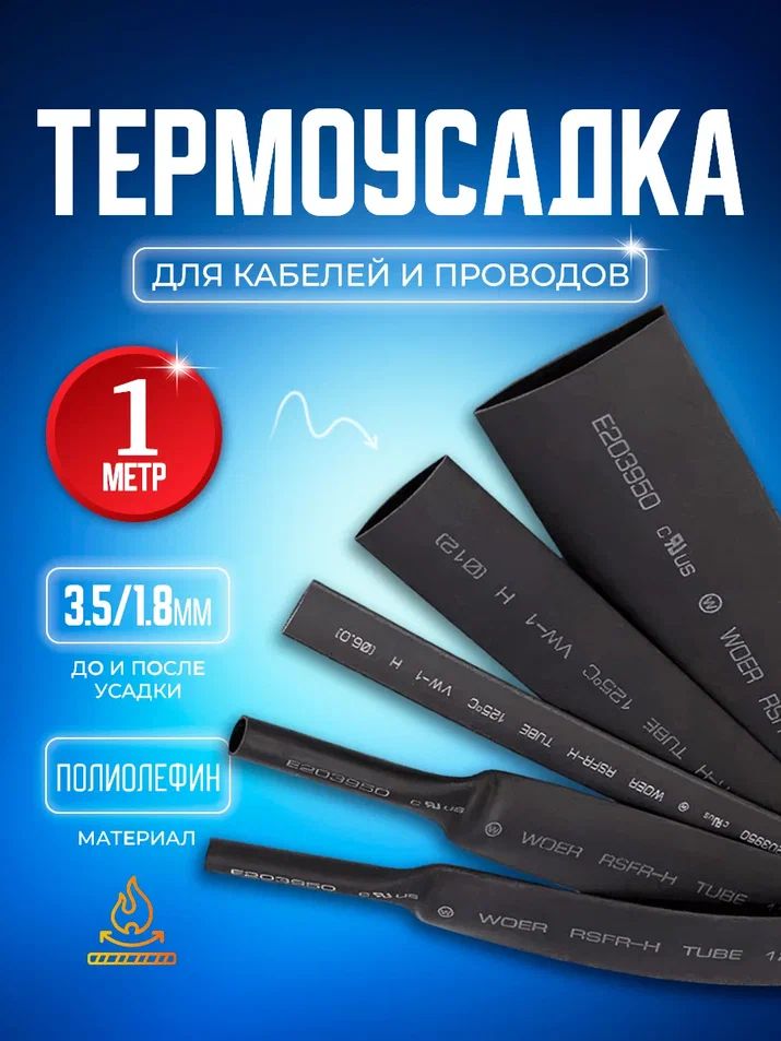 Трубка изготовлена из полиолефина, что обеспечивает ей устойчивость к окислителям, негорючесть и экологическую безопасность. Процесс усадки происходит быстро и легко: достаточно нагреть трубку до нужной температуры и дать ей остыть до комнатной. Нагреть трубку можно с помощью теплового фена, газовой горелки или обычной зажигалки. В описании товара вы найдёте видео с подробной инструкцией по использованию.