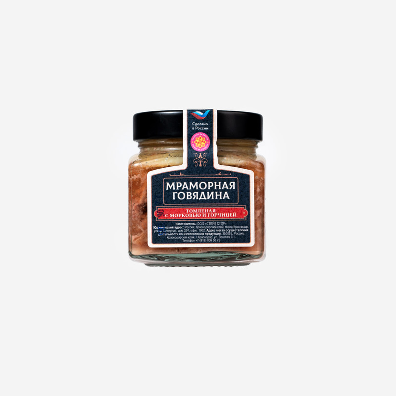 “Говядина категории А, морковь, соль, петрушка, горчица русская, чеснок “