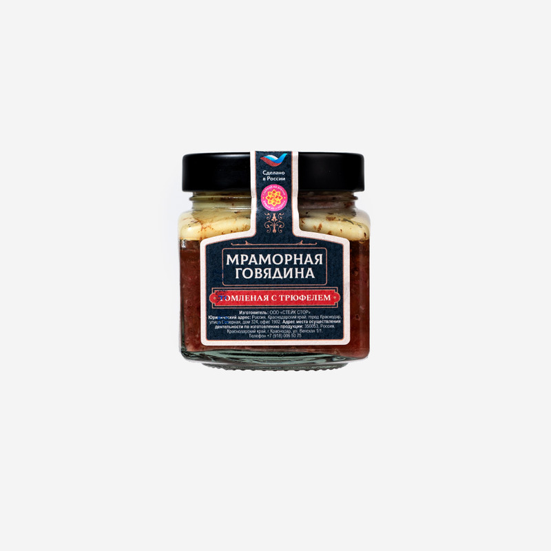 Говядина категории А, масло подсолнечное, соль, петрушка, оливки/маслины, шампиньоны, пудра трюфельная, перец черный.