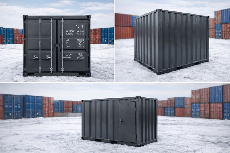 Контейнер 10 футов имеет внутренний объем около 15,9 м3. Масса нетто составляет 1,38 т, грузоподъемность — 17 т. Изготавливается на прочном стальном каркасе с обшивкой из профилированных металлических листов с антикоррозийной обработкой. Внешнее покрытие может быть цветным. Пол — деревянный настил 30 мм. Дверной проем (Ш*В, мм: 2310*2270) позволяет проводить удобную загрузку/разгрузку в короткий срок. Благодаря прочности и компактности, такие контейнеры часто устанавливаются друг на друга.