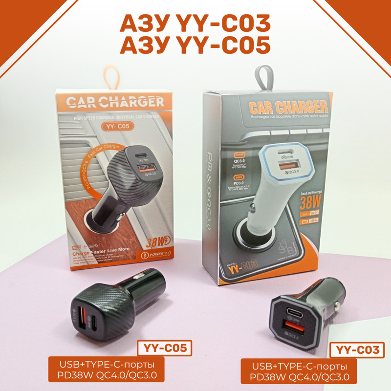 АЗУ YY-C05 с портами USB и Type-C. Поддержка Power Delivery 38W, QC4.0/QC3.0. Цена 184 ₽