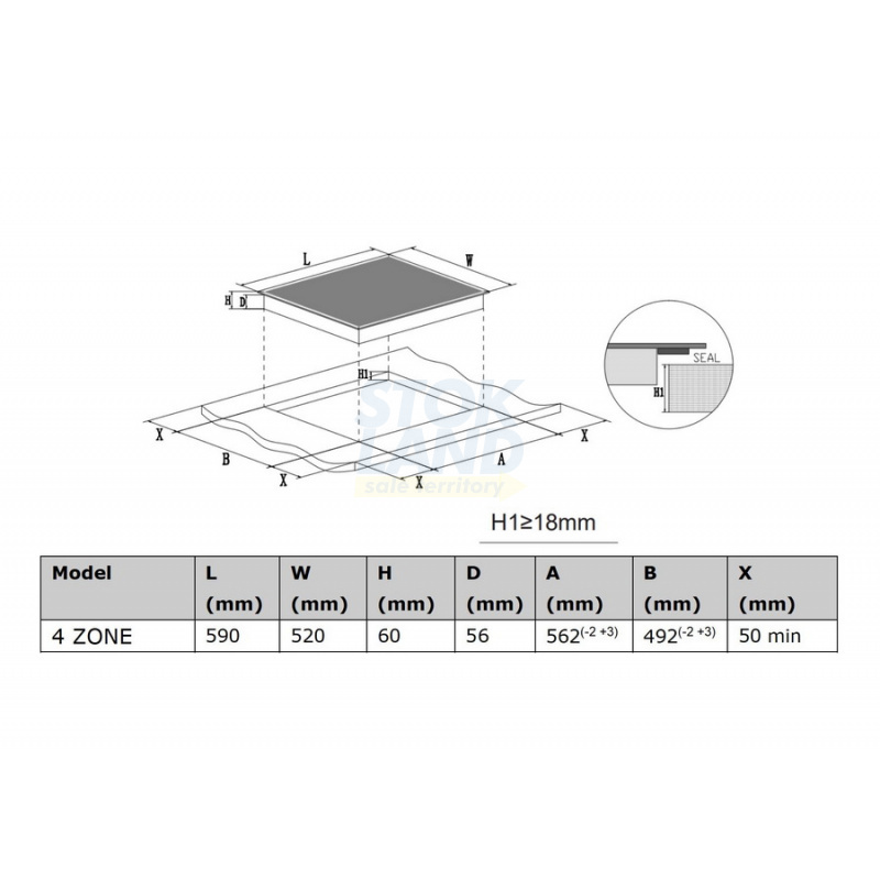 Габариты ниши для встраивания (ВxШxГ), см: -x56x49