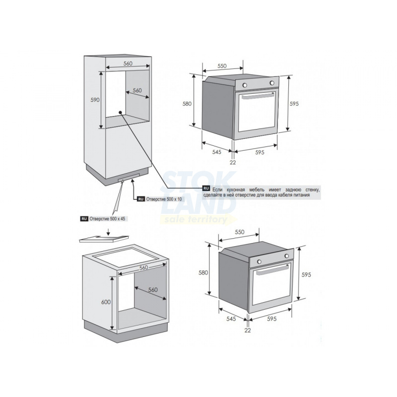 Габариты духовки (ВxШxГ), см: 59.5x59.5x56.7