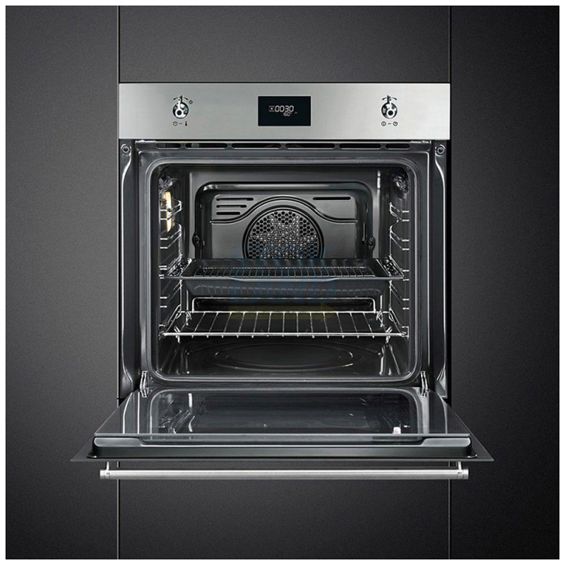 Электрический духовой шкаф Smeg SF6301TVX — стильный и функциональный прибор для приготовления разнообразных блюд. Вместительная камера и разнообразные режимы нагрева позволяют готовить одновременно несколько блюд и экспериментировать с рецептами.