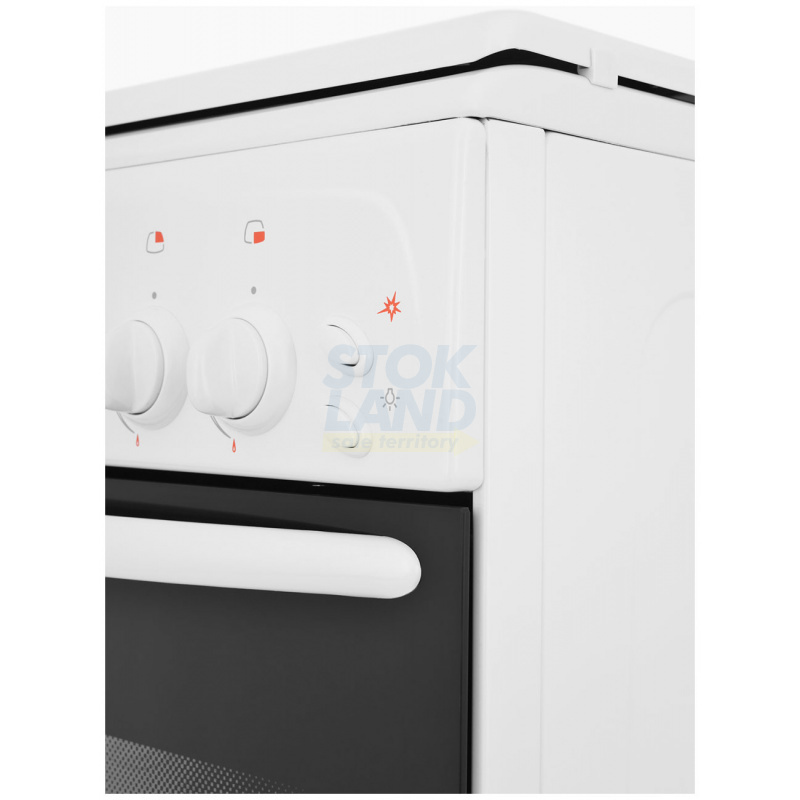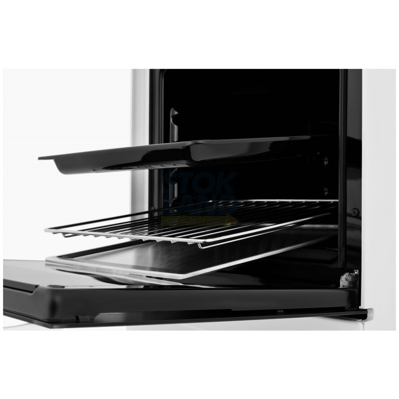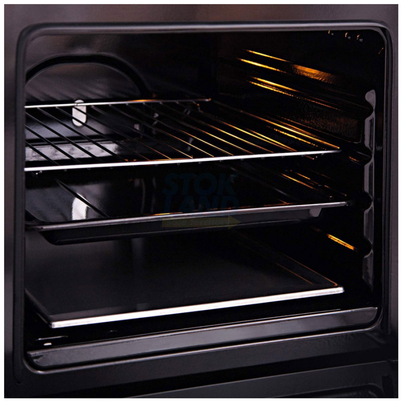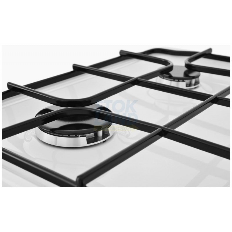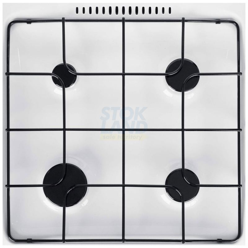 Мощная, быстрого нагрева конфорка соседствует с двумя стандартными, есть и небольшая, экономичная. Все конфорки оснащены механическим электроподжигом, розжиг осуществляется нажатием кнопки на панели управления вместе с поворотом переключателя. Жарочный шкаф с нижней горелкой оборудован освещением и термоуказателем, чьи показания выведены на дверцу. Духовка с газ-контролем, при угасании пламени горелки, подача газа будет перекрыта.