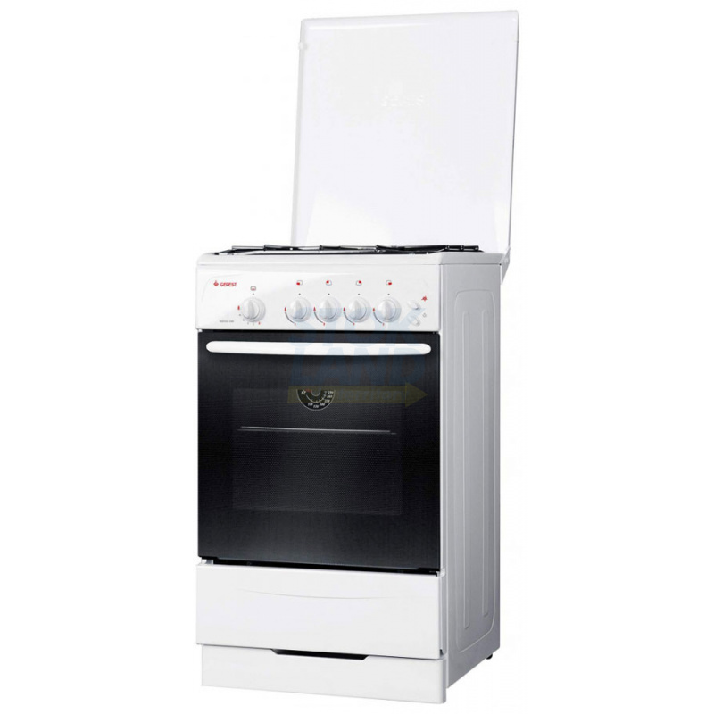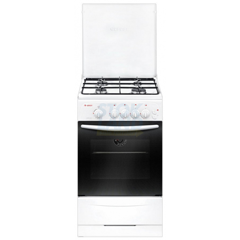 Газовая плита шириной 50 см, фасад и рабочая поверхность из нержавеющей стали. Дизайн-классический, внешний вид производит впечатление основательности и надежности, плита с отблеском металла замечательно впишется в интерьер. Стеклянная защитная крышка рабочей поверхности и выдвижной ящик для хранения посуды дополняют комплектацию модели.