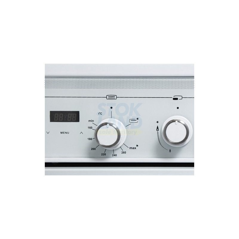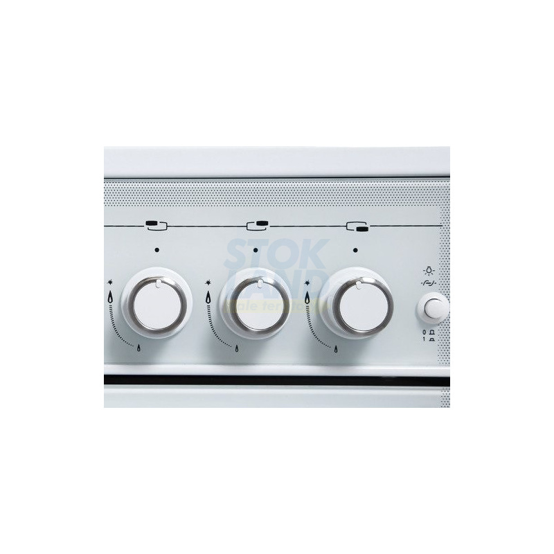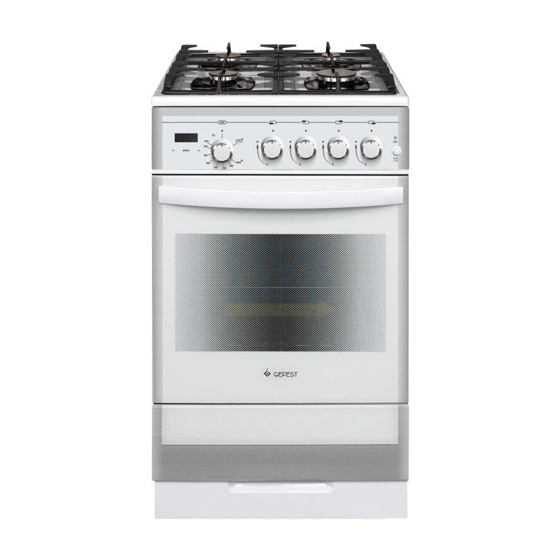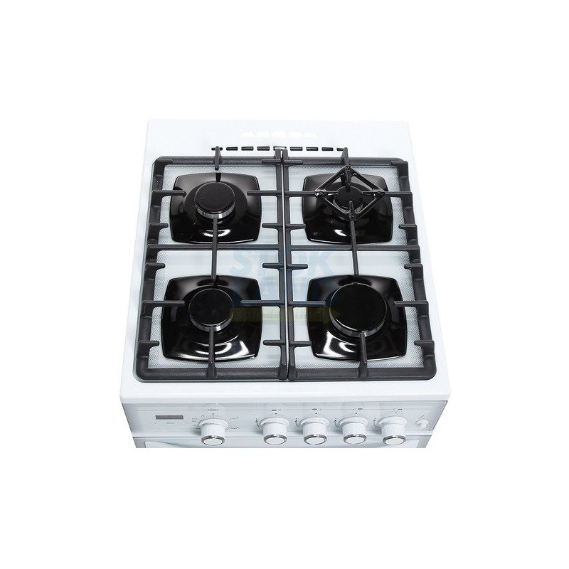 Газовая плита шириной 50 см в белом цвете, фасад -стеклянный. Классический дизайн в современном облике дополнен хорошим техническим оснащением. Автоматический электроподжиг, все горелки рабочего стола и духовки оснащены газ-контролем, перекрывающим подачу газа в случае угасания пламени.