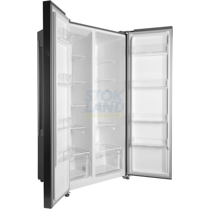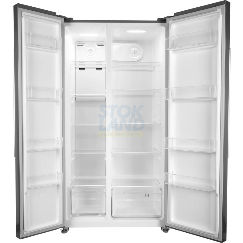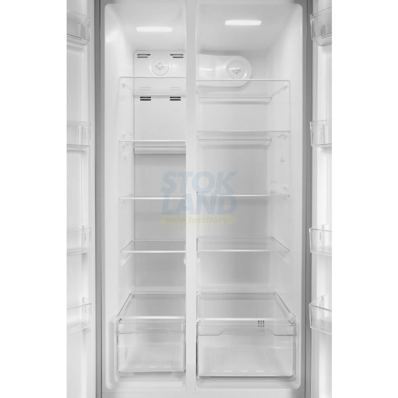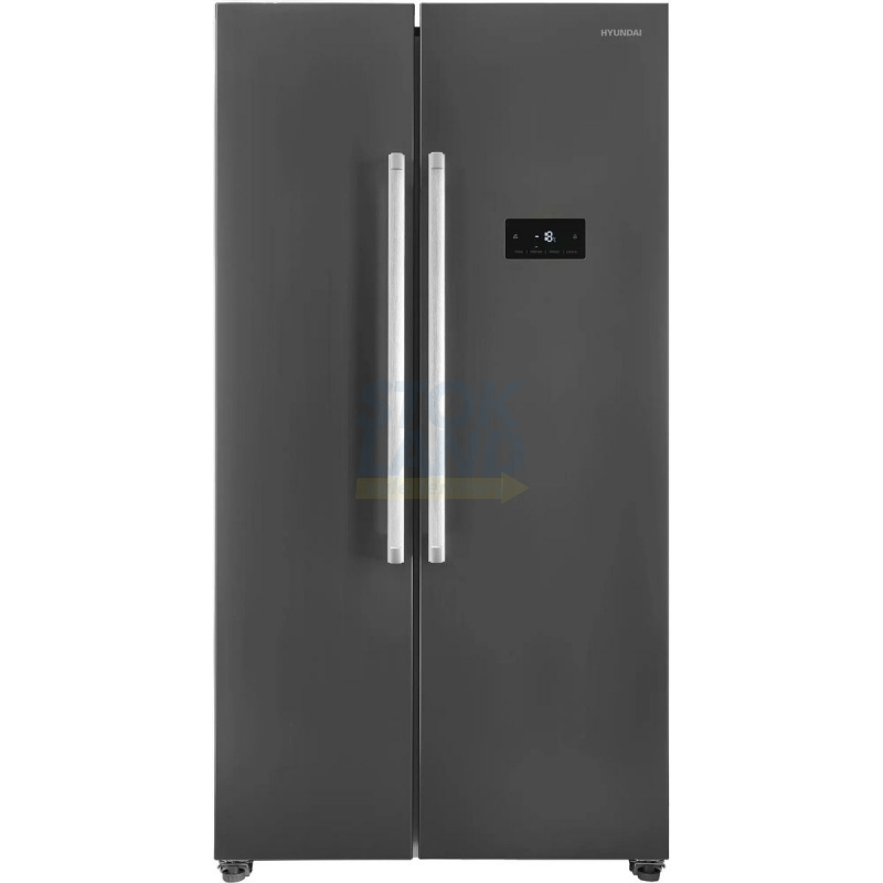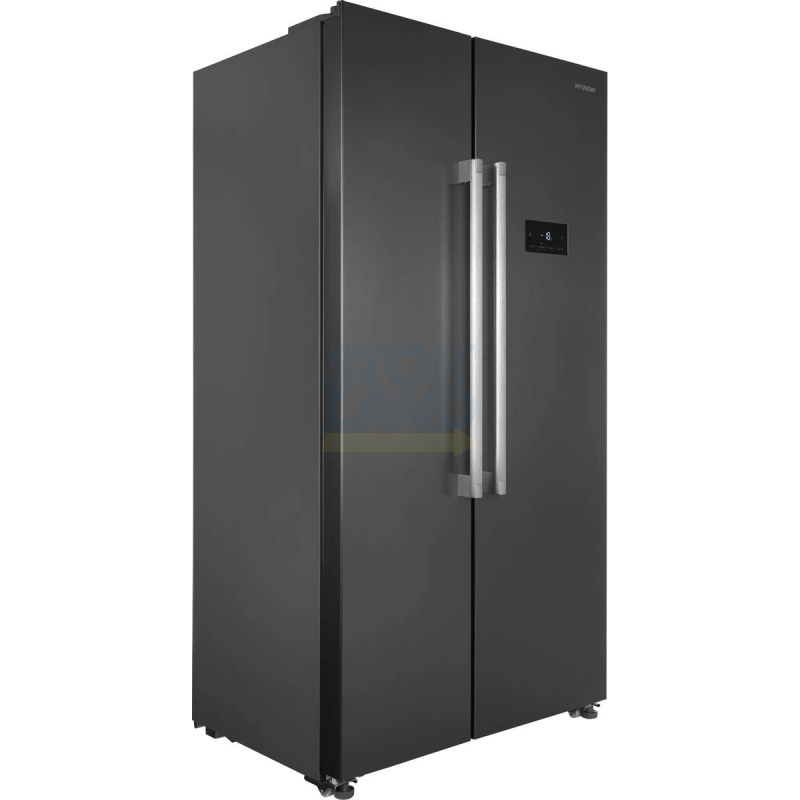 Холодильник Side-by-Side Hyundai CS55023F в корпусе из нержавеющей стали. Отличный выбор для большой семьи. Много места для хранения продуктов.