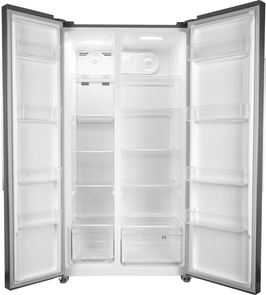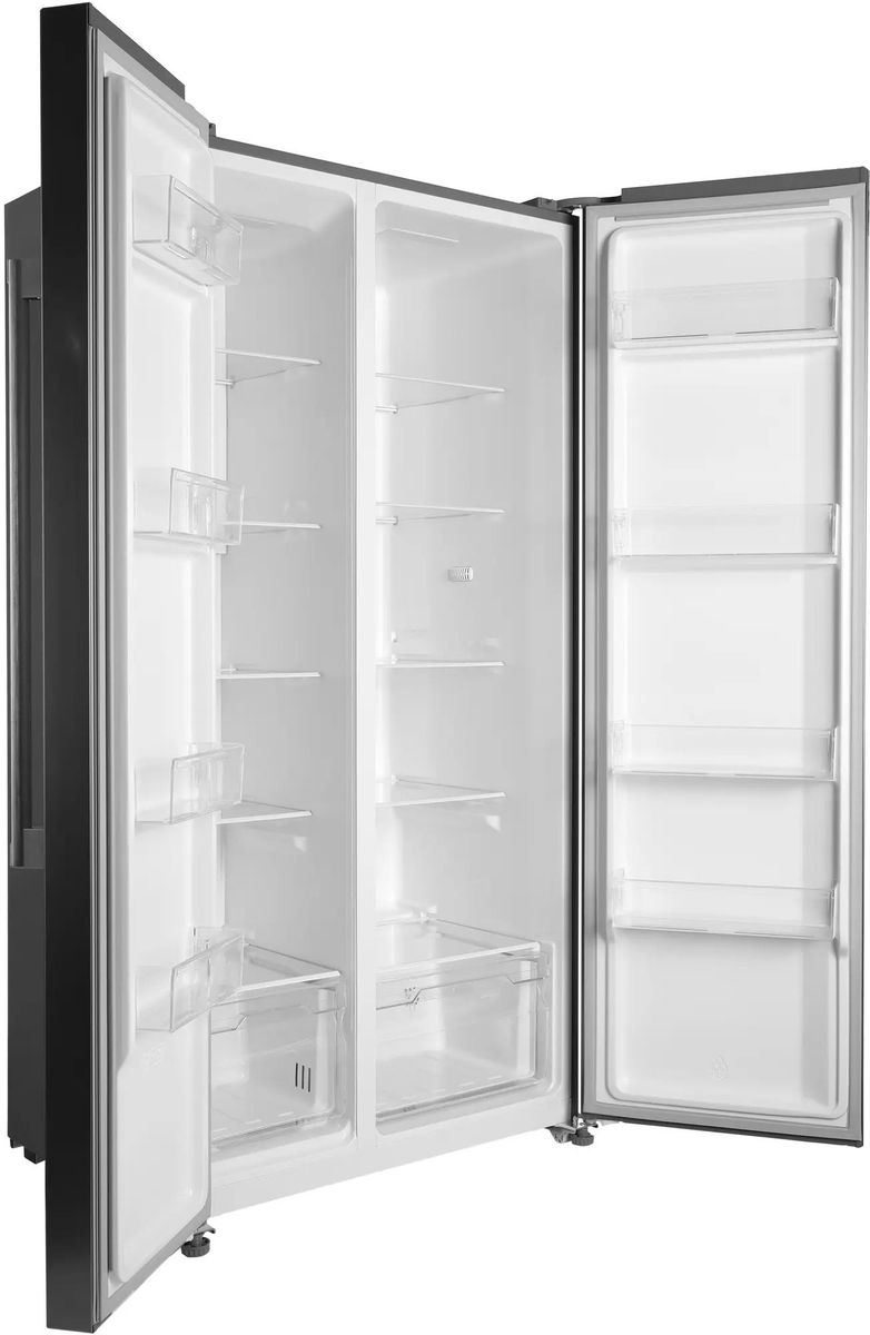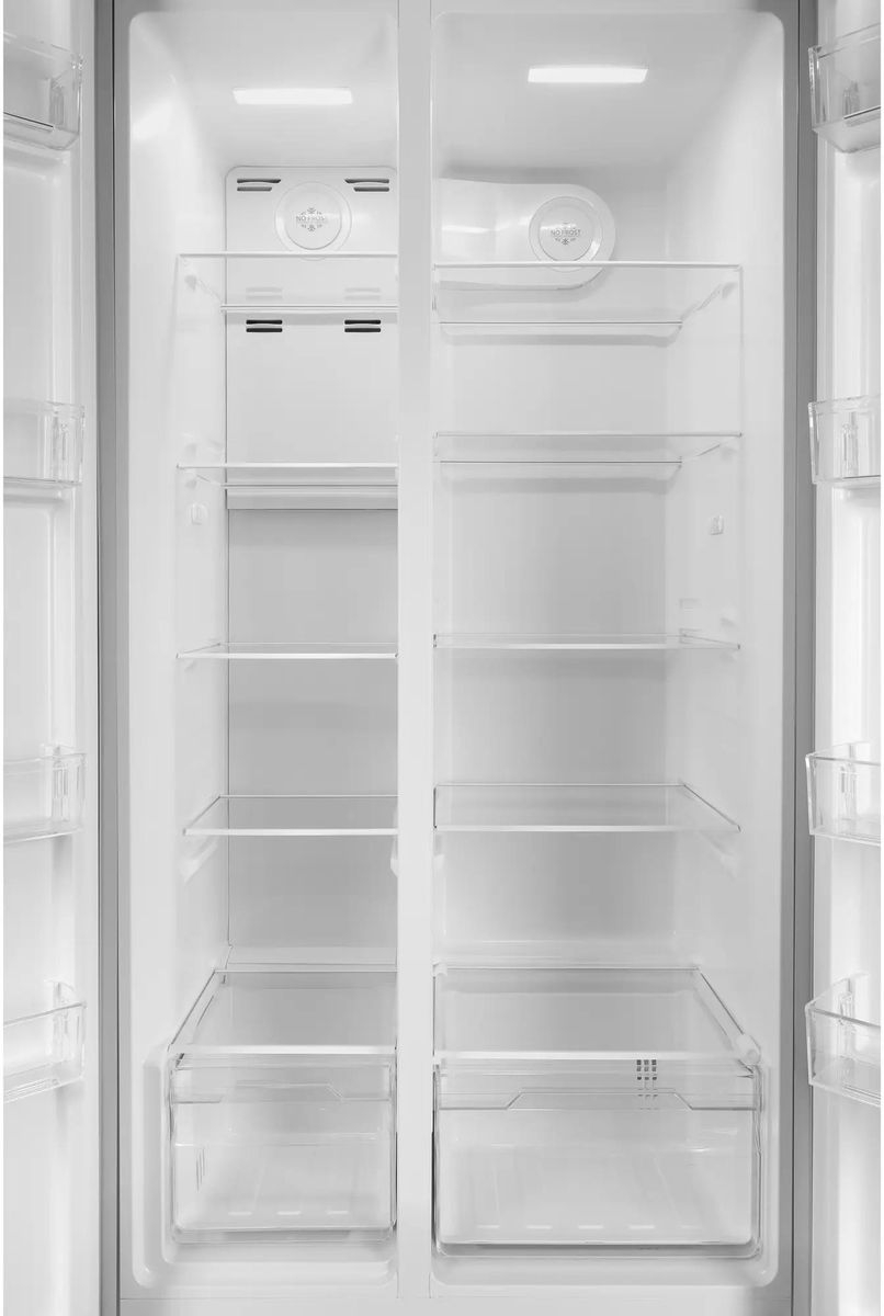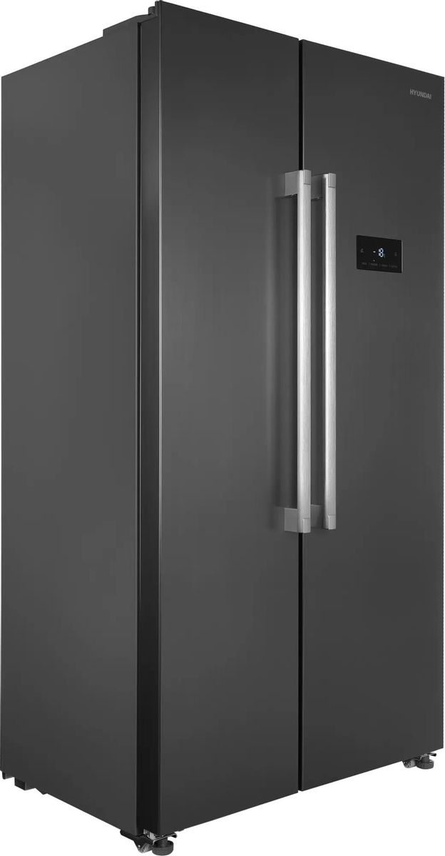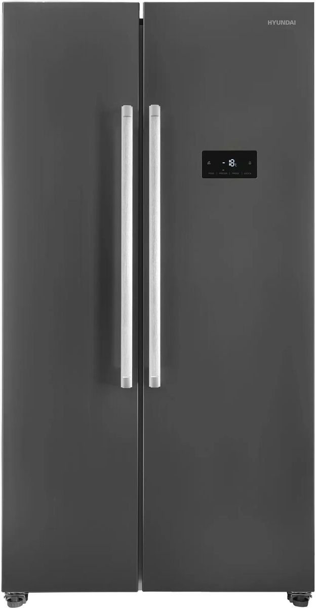 Холодильник Side-by-Side Hyundai CS55023F в корпусе из нержавеющей стали. Отличный выбор для большой семьи. Много места для хранения продуктов.