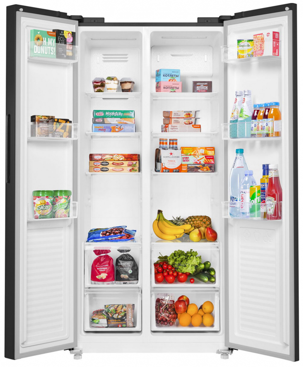 Холодильник Side-by-Side Maunfeld MFF177NFSE — это вместительная модель с продуманной системой хранения. Идеальное решение для большой семьи.