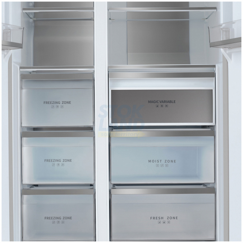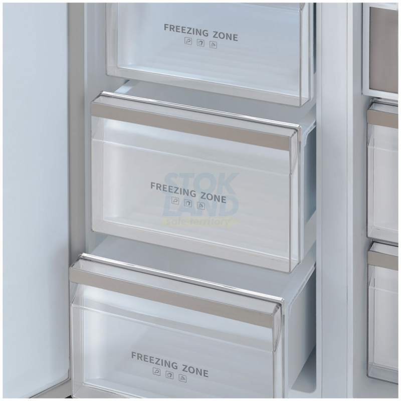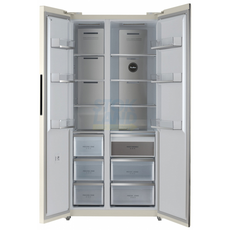 Холодильник Side-by-Side Tesler RSD-537BI MARBLE BEIGE — вместительный и стильный прибор в бежевом цвете, обеспечивающий надёжное хранение продуктов.