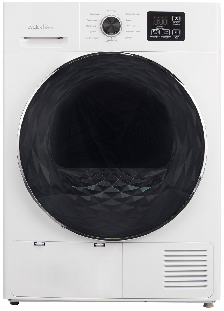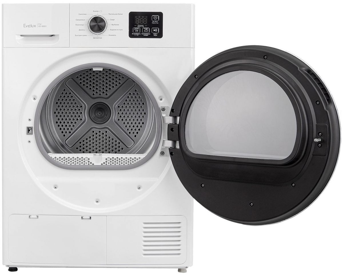 Сушильная машина Evelux ED 68001 с тепловым насосом обеспечивает эффективную сушку белья, экономя электроэнергию. Простое управление и надежность делают её удобным решением для дома.