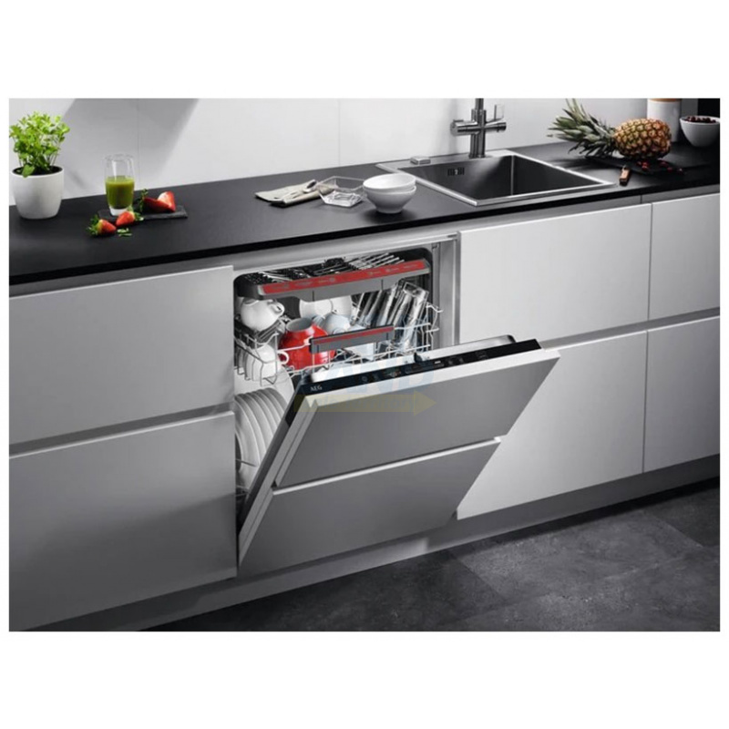 Встраиваемая посудомоечная машина AEG FSB64907Z — это современное и высококачественное устройство, которое сочетает в себе привлекательный дизайн и передовые технологии. Модель обладает элегантным черным цветом панели управления и выполнена в строгом стиле, что позволит ей гармонично вписаться в любой интерьер. При этом устройство полностью встраивается в кухонный гарнитур, не нарушая общий стиль помещения. Одним из ключевых преимуществ модели является ее вместительность: в посудомоечную машину можно загрузить до 14 комплектов посуды, что делает ее отличным выбором для больших семей или любителей приглашать гостей. Кроме того, устройство оборудовано семью программами мытья, включая быструю, стандартную и автоматическую, что позволяет подобрать оптимальный режим в зависимости от степени загрязнения посуды и времени, которое вы готовы потратить на ее очистку.