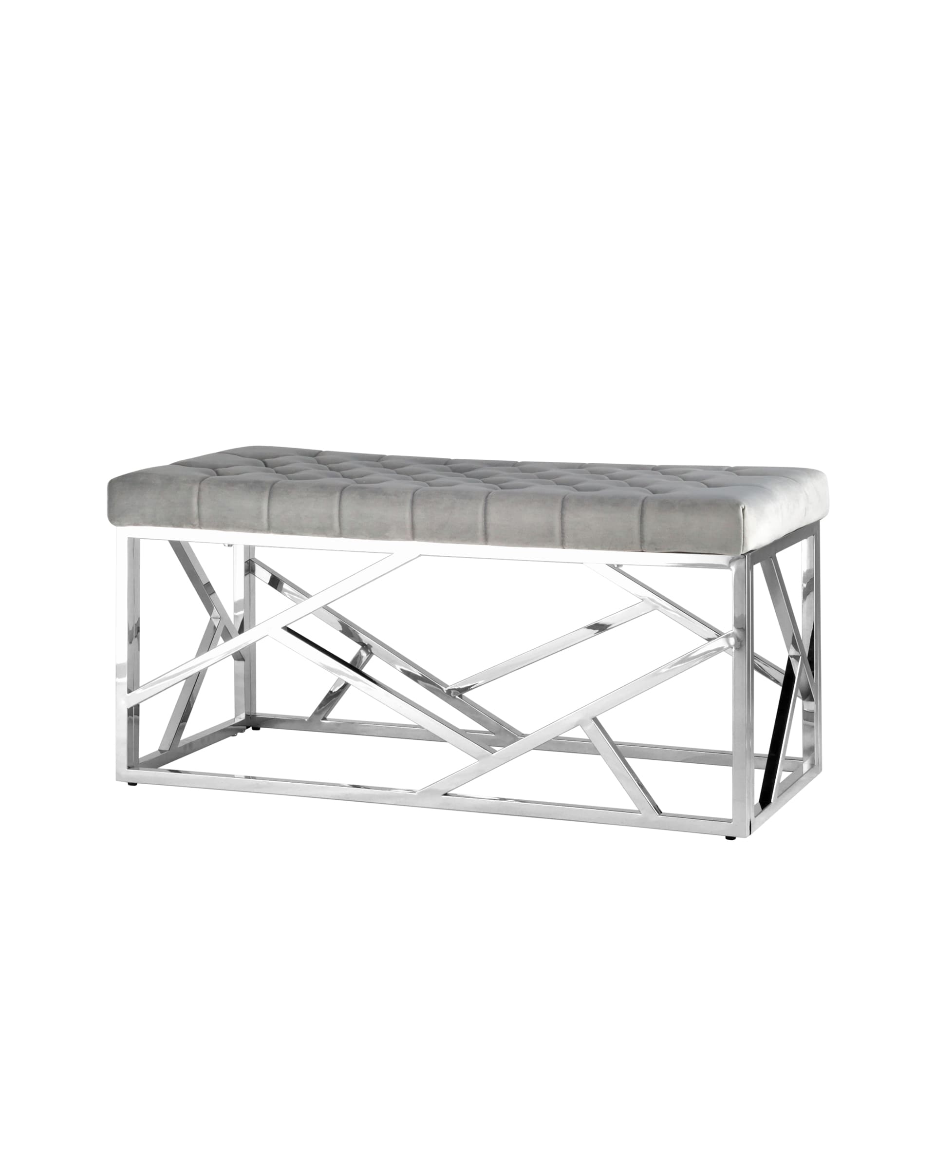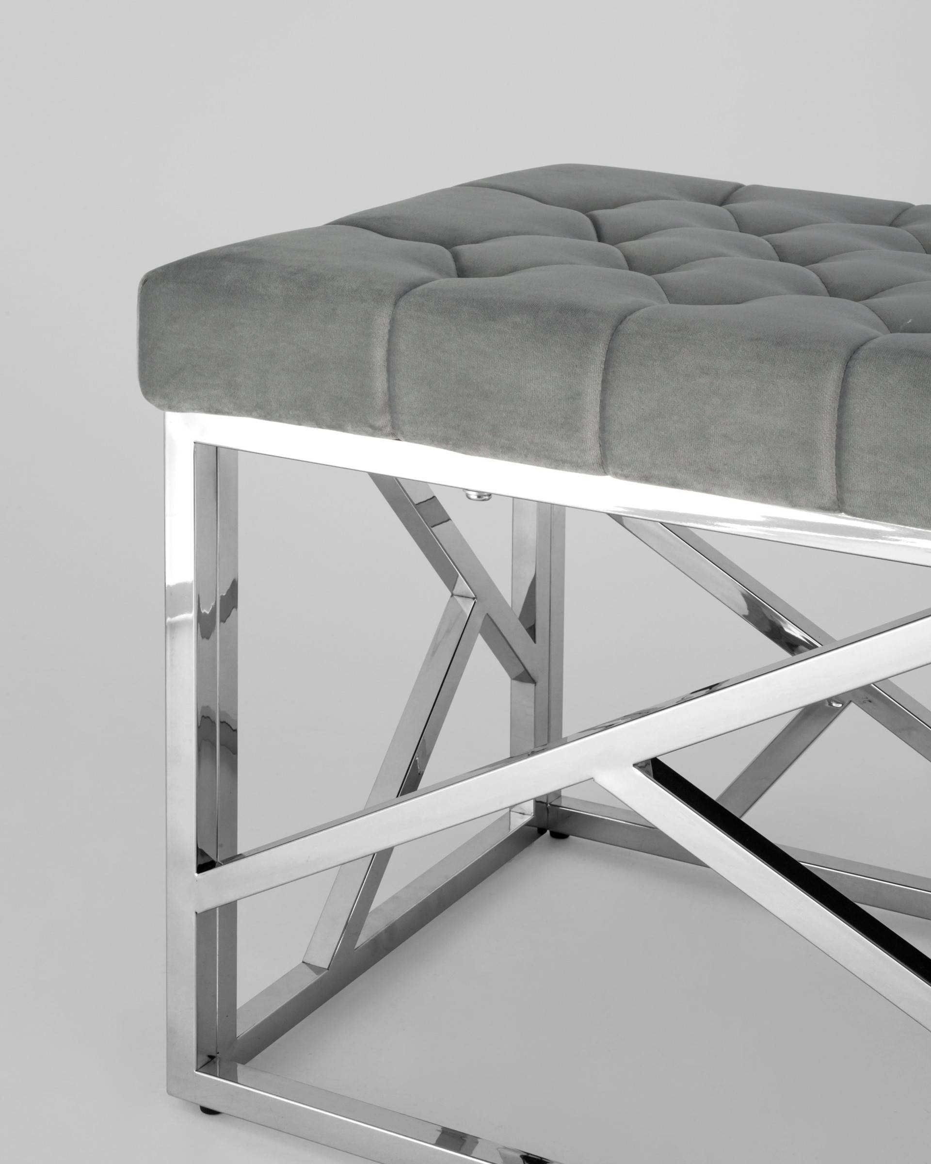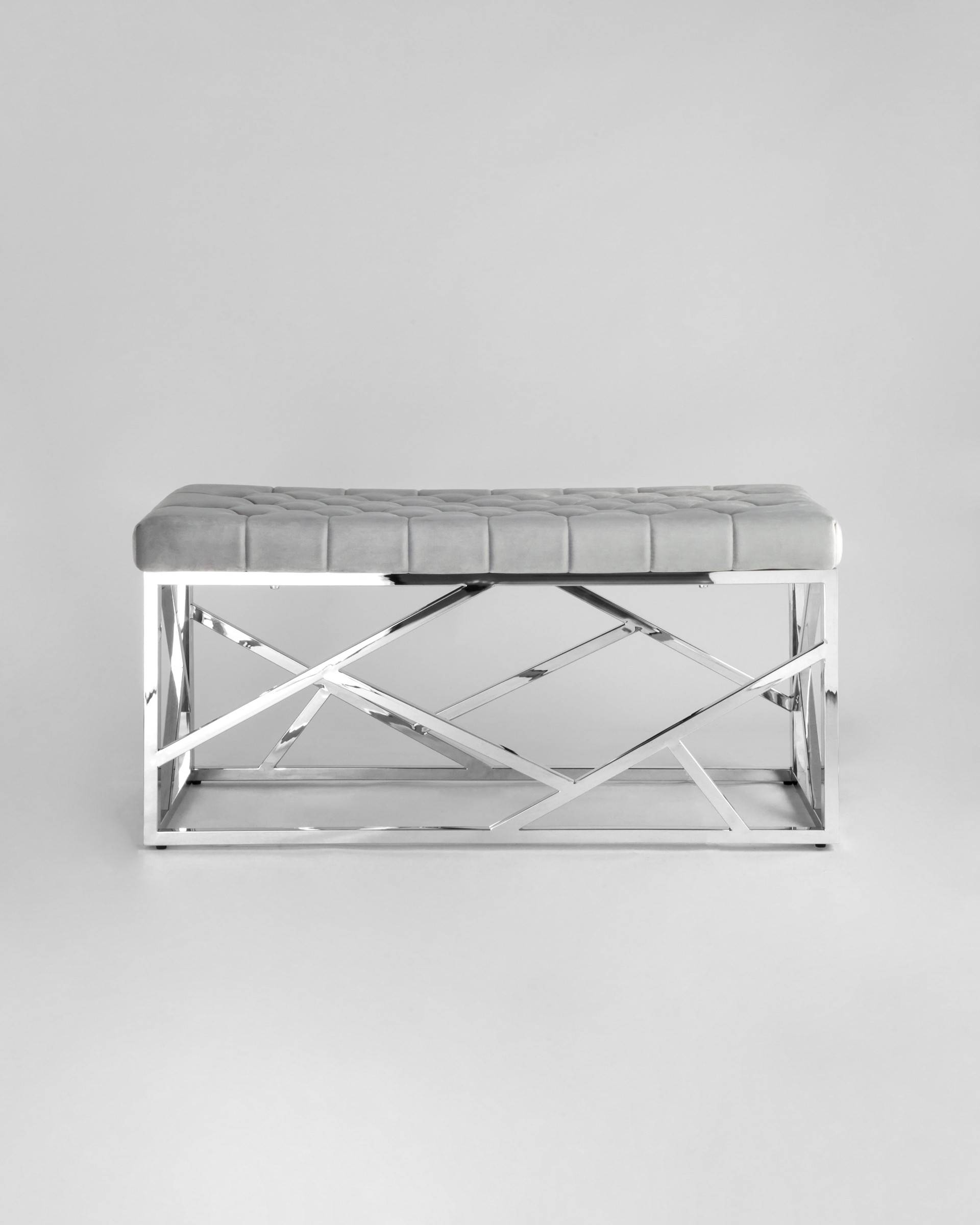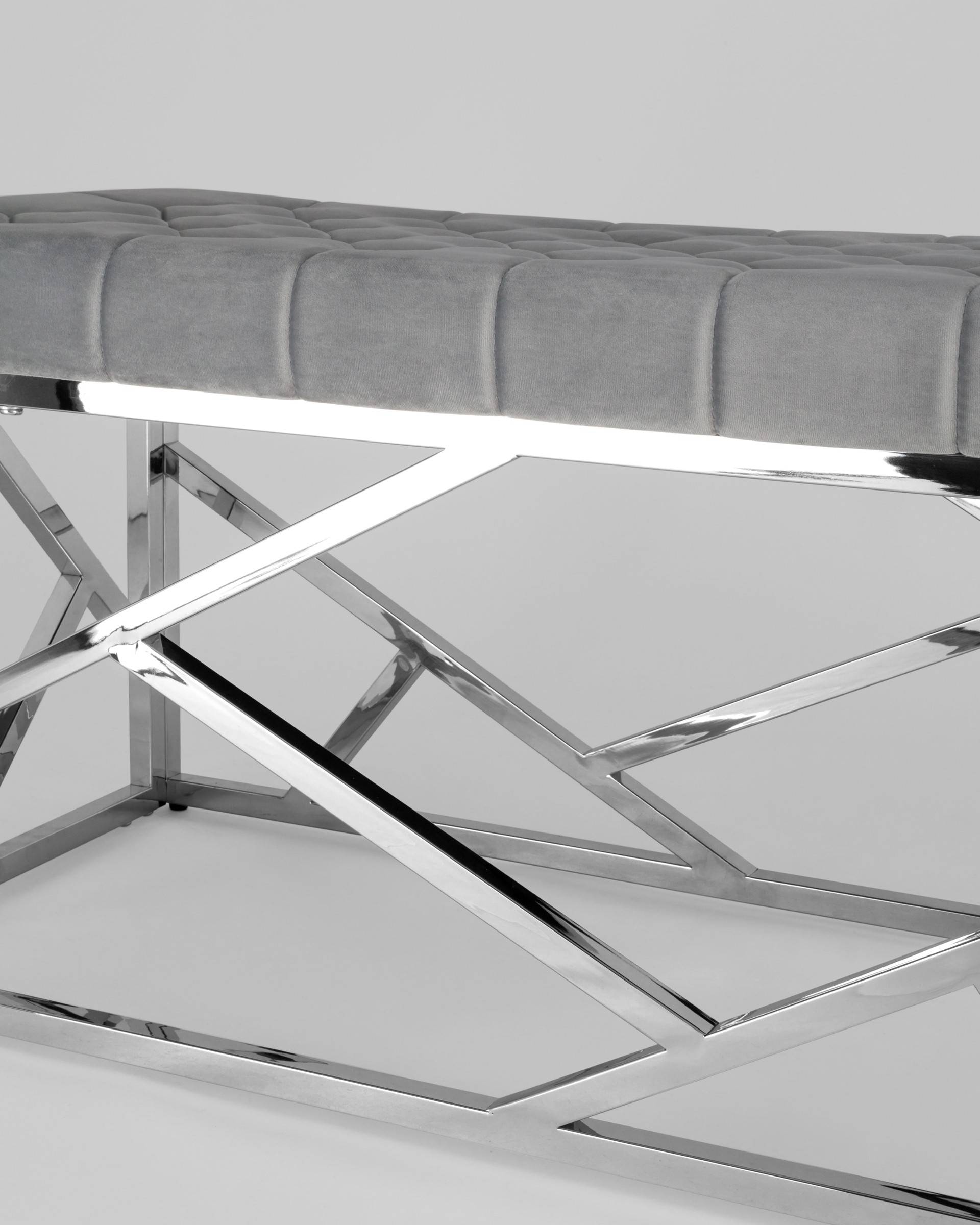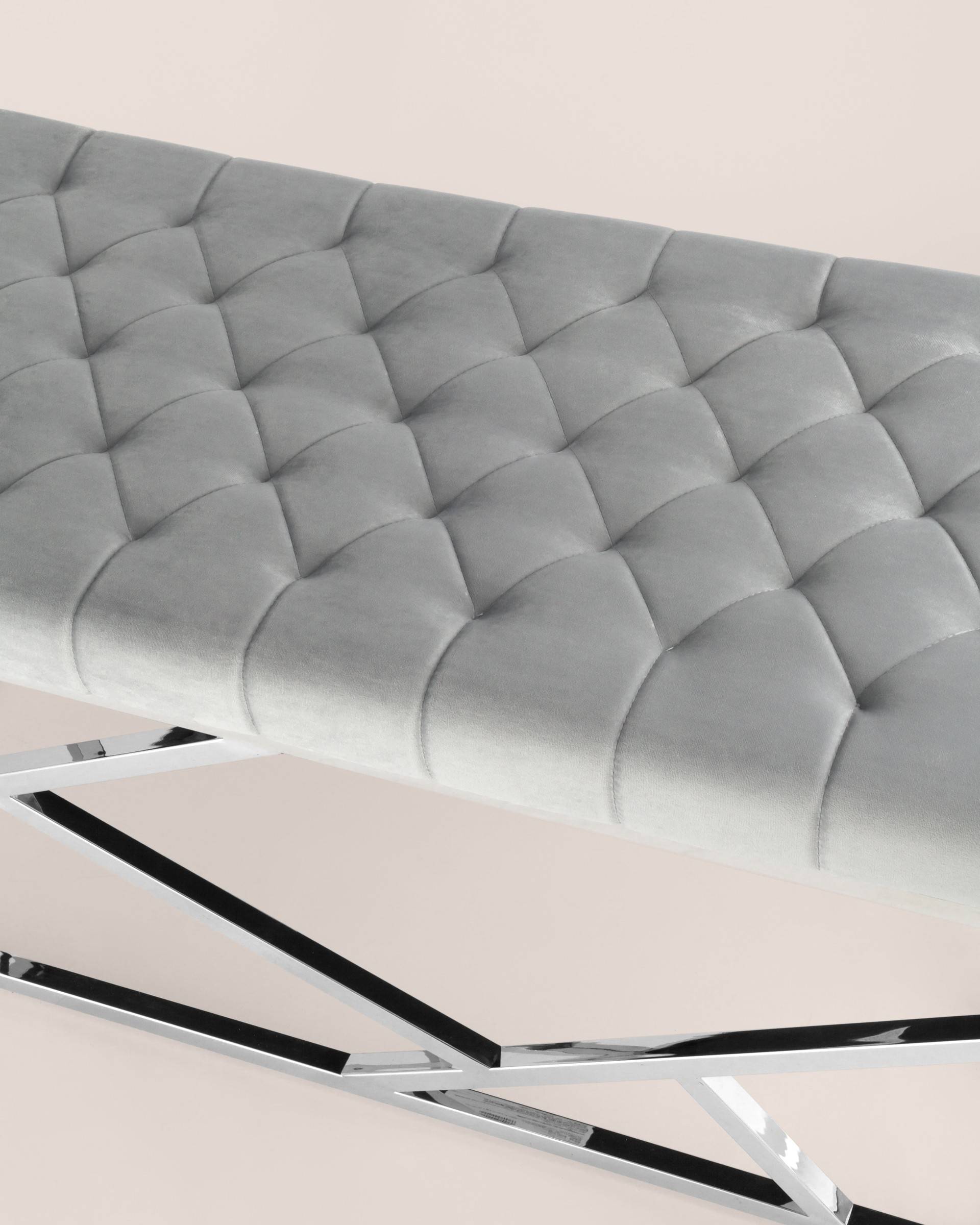 Банкетка-скамейка АРТ ДЕКО сталь серебро, нержавеющая сталь, обивка сиденья серый велюр.