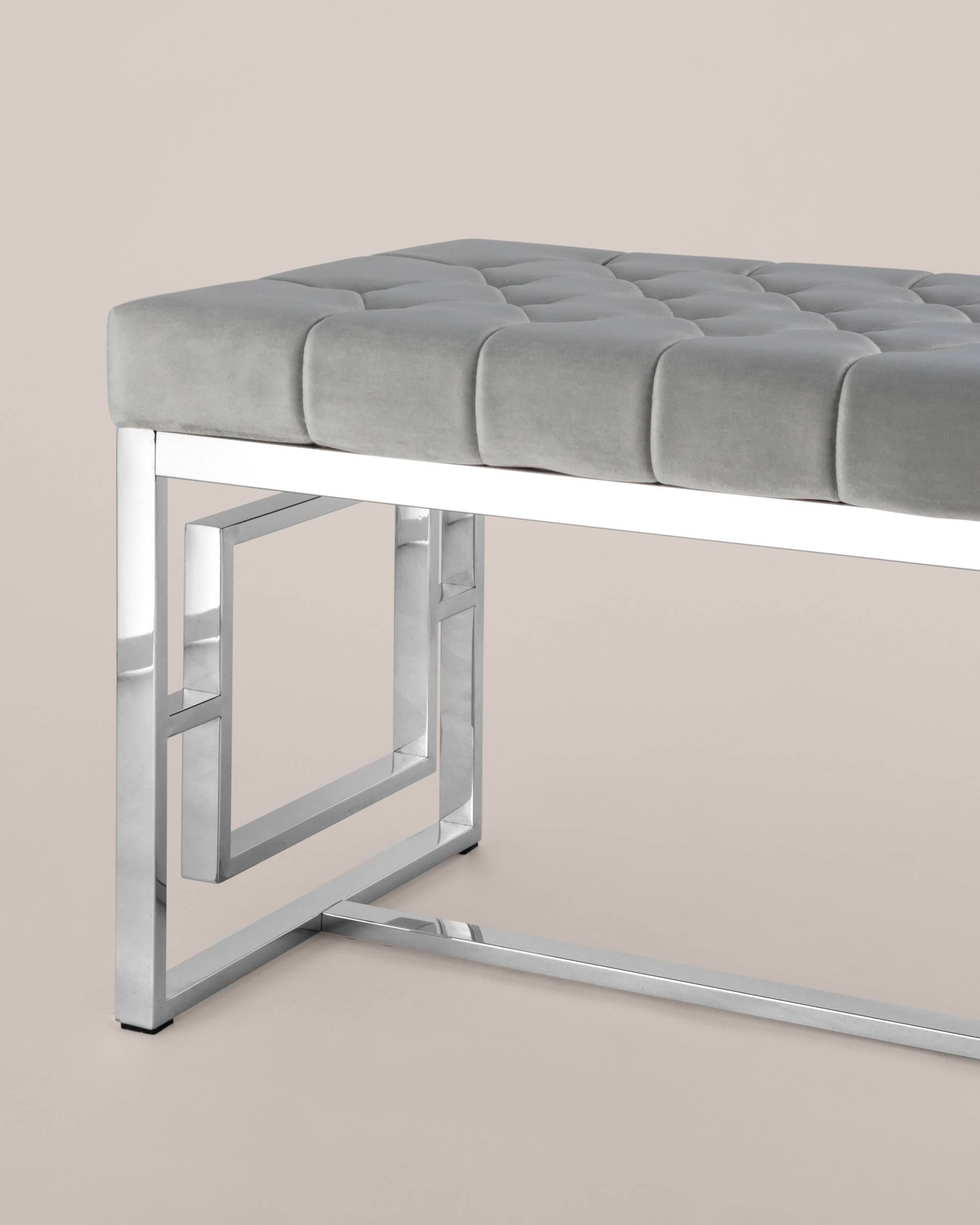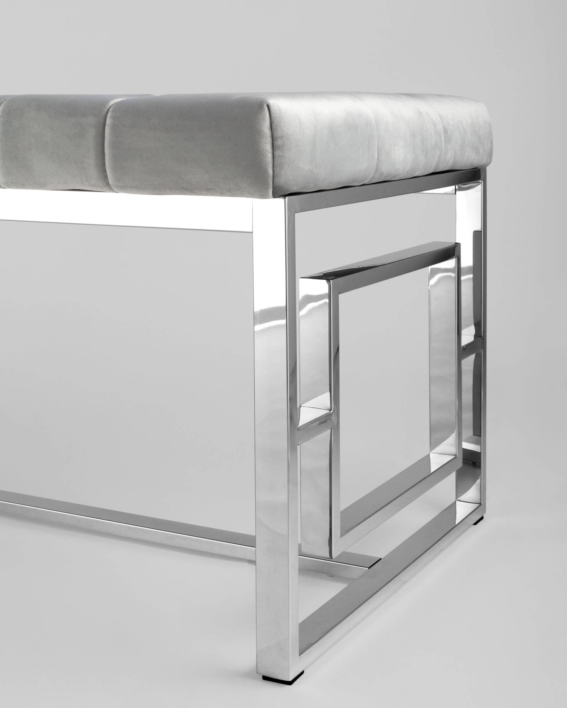 Банкетка Stool Group БРУКЛИН сталь серебро, нержавеющая сталь, обивка сиденья серый велюр.