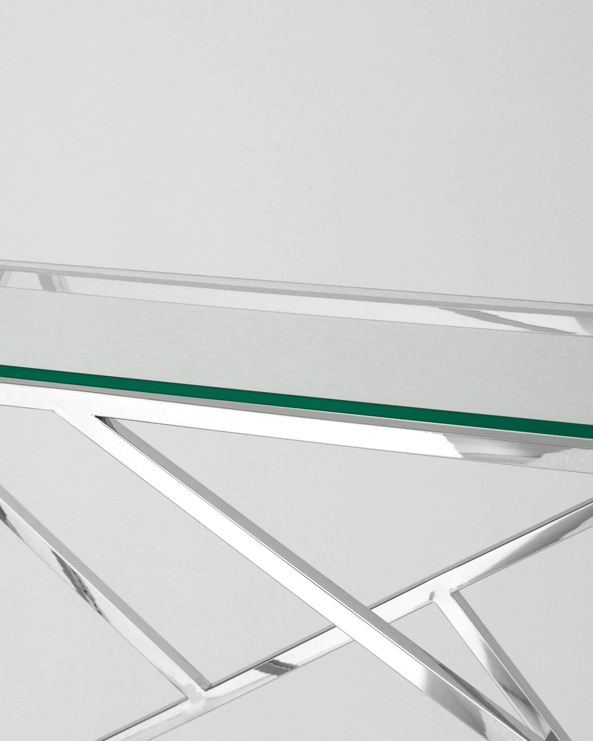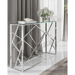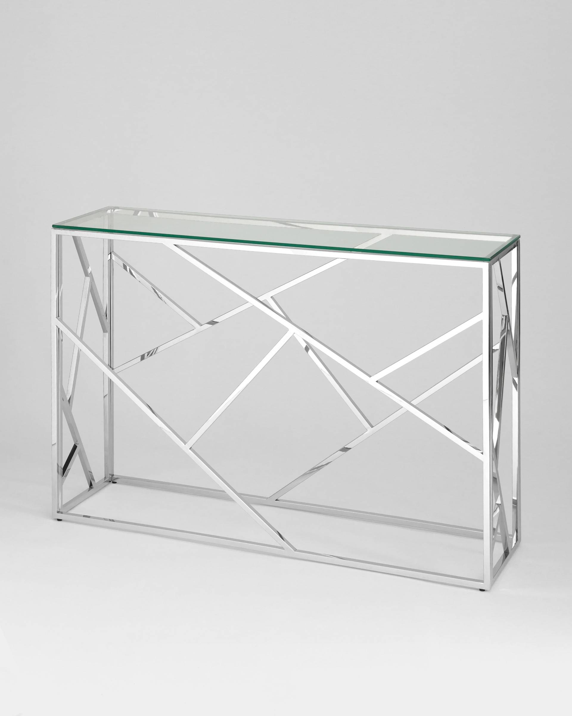 Консоль Stool Group АРТ ДЕКО 115*30 серебро, каркас нержавеющая сталь, столешница закаленное стекло.
