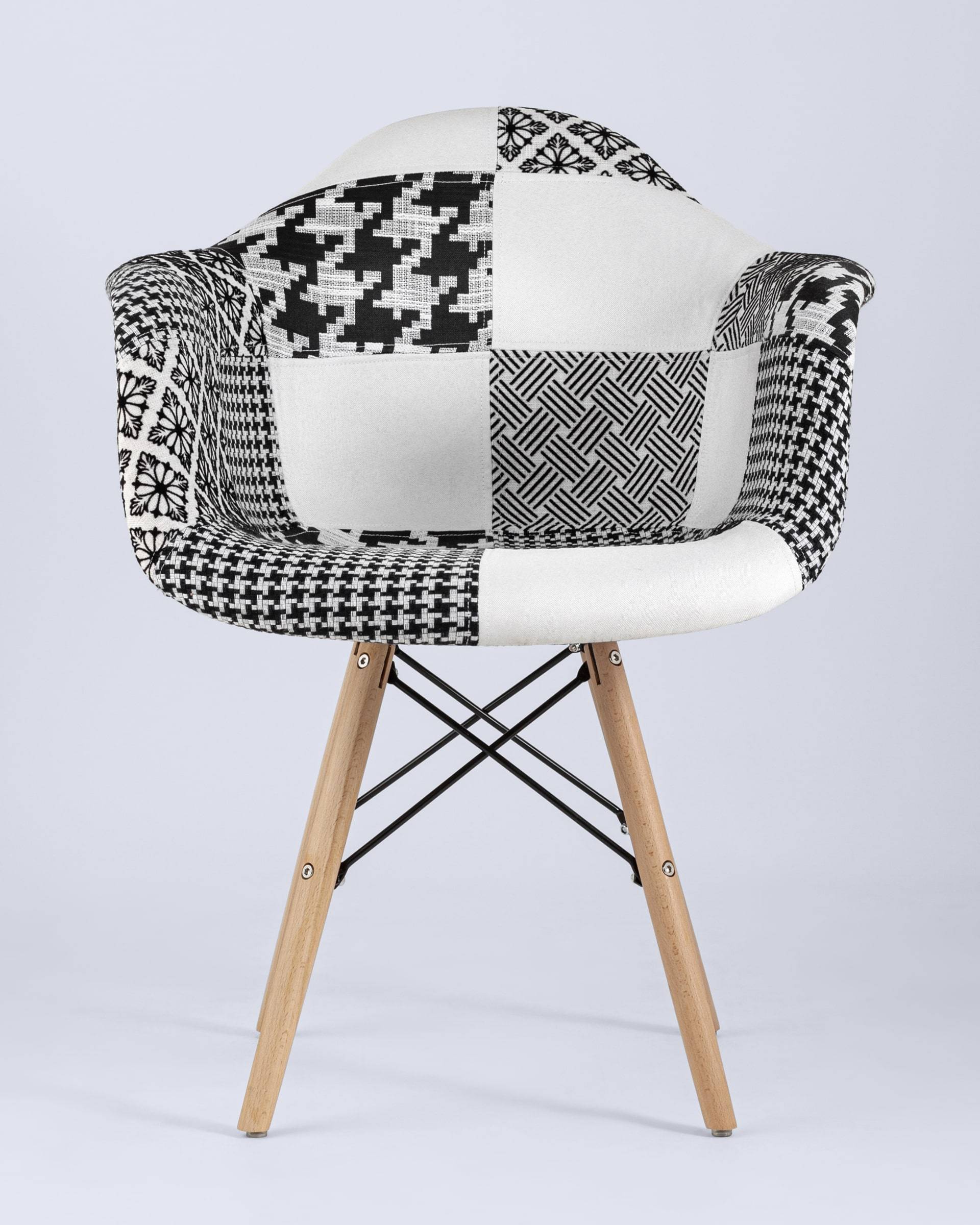 Кресло Eames в стиле пэчворк черно-белое, ножки массив бука.
