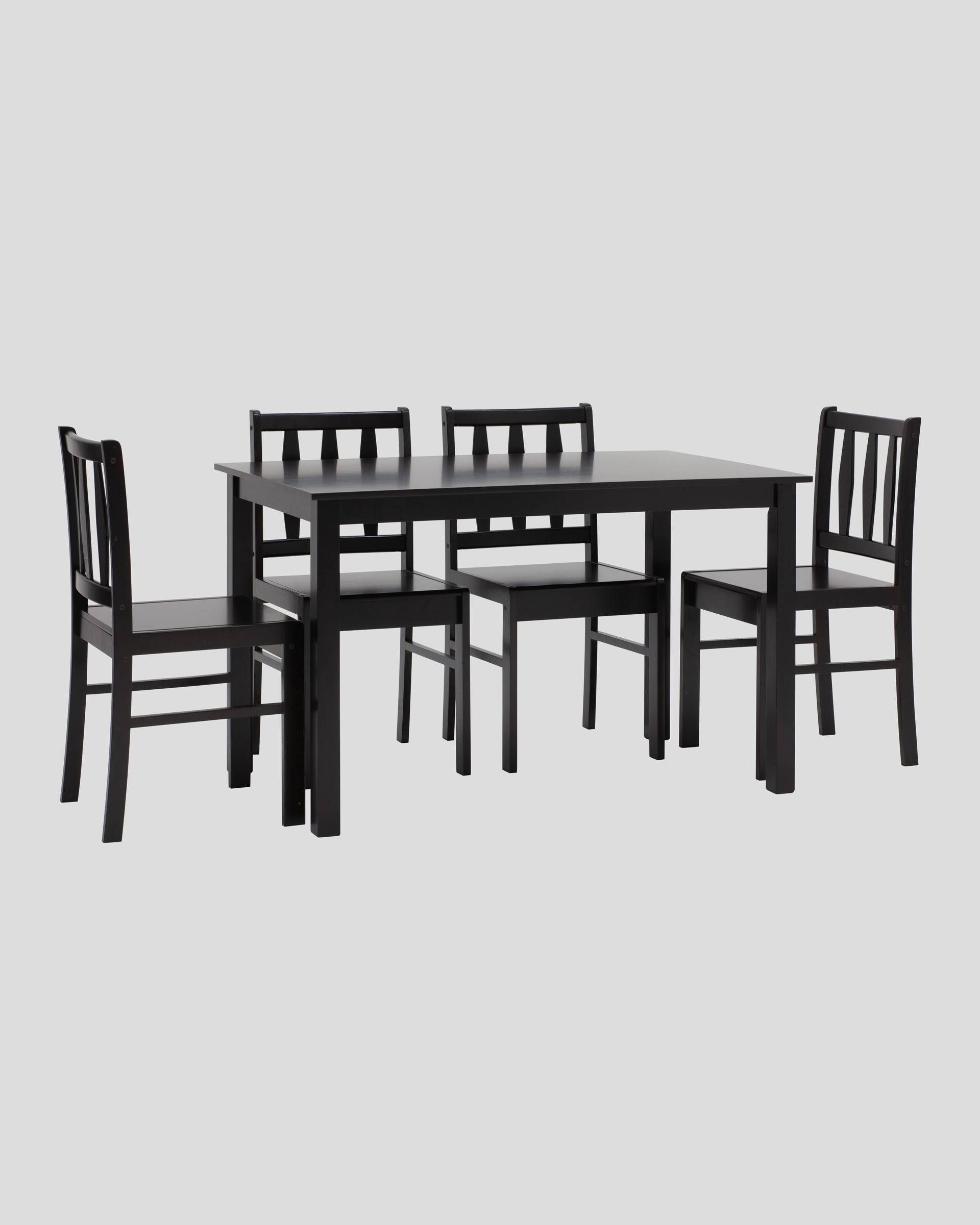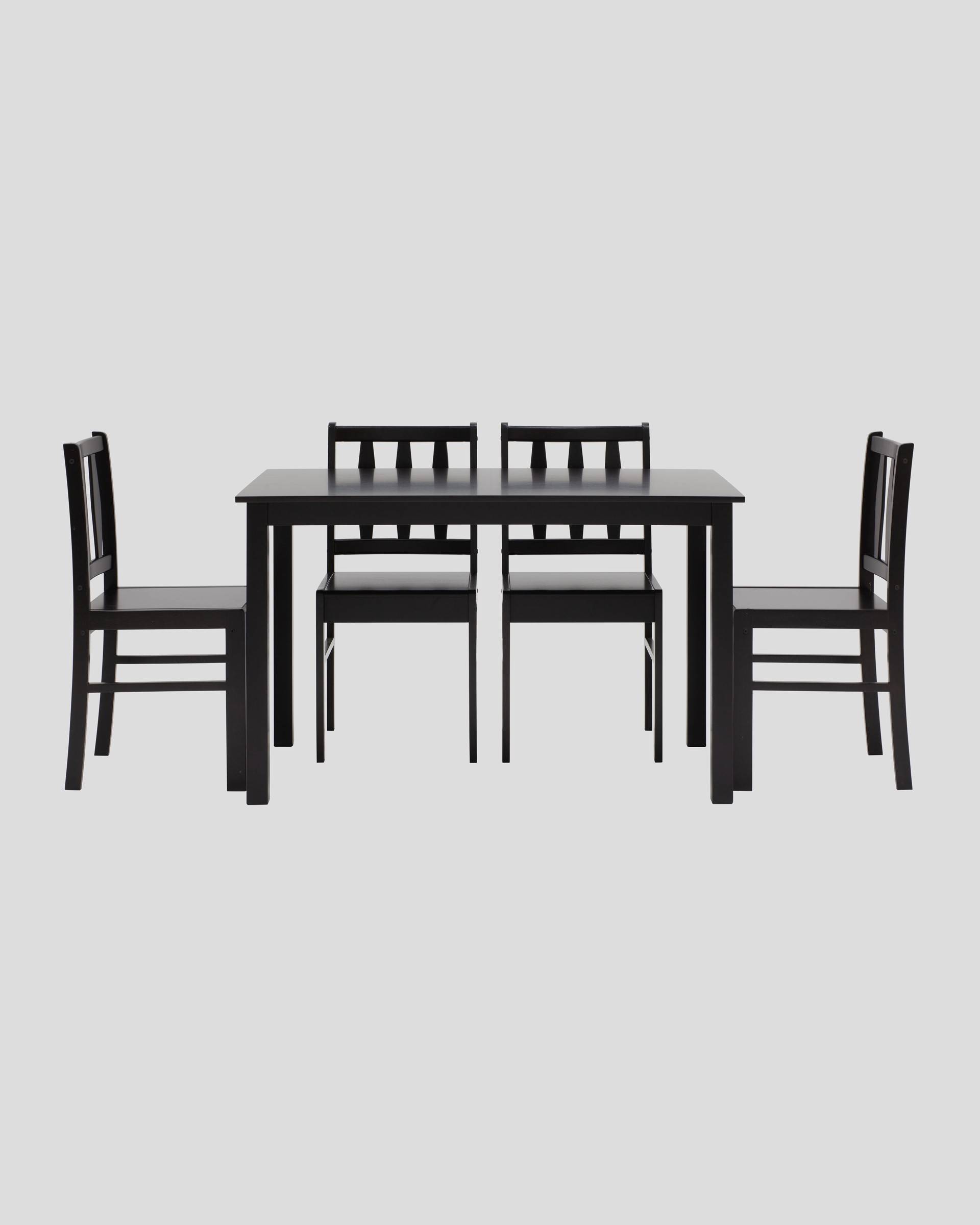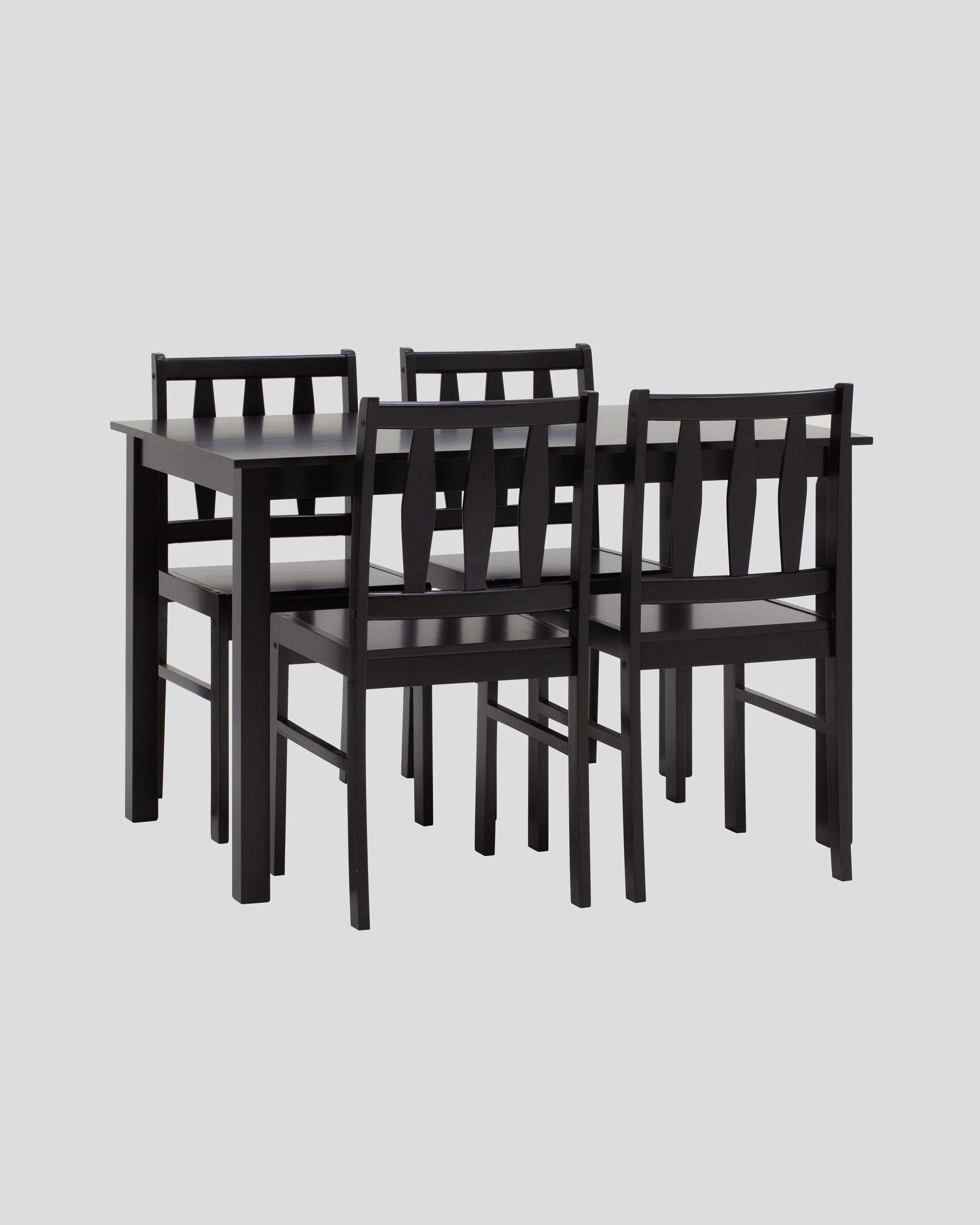 Комплект обеденный INGRID из стола и четырех стульев деревянные, ножки стола и каркас стульев из массива гевеи.