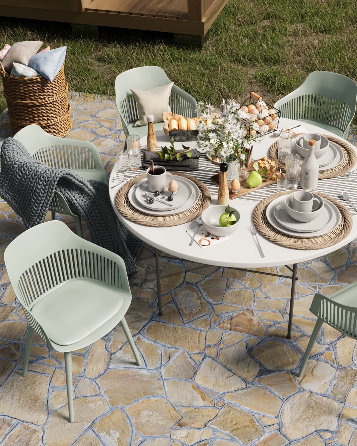 Стол складной круглый 150 см диаметр, белая столешница.