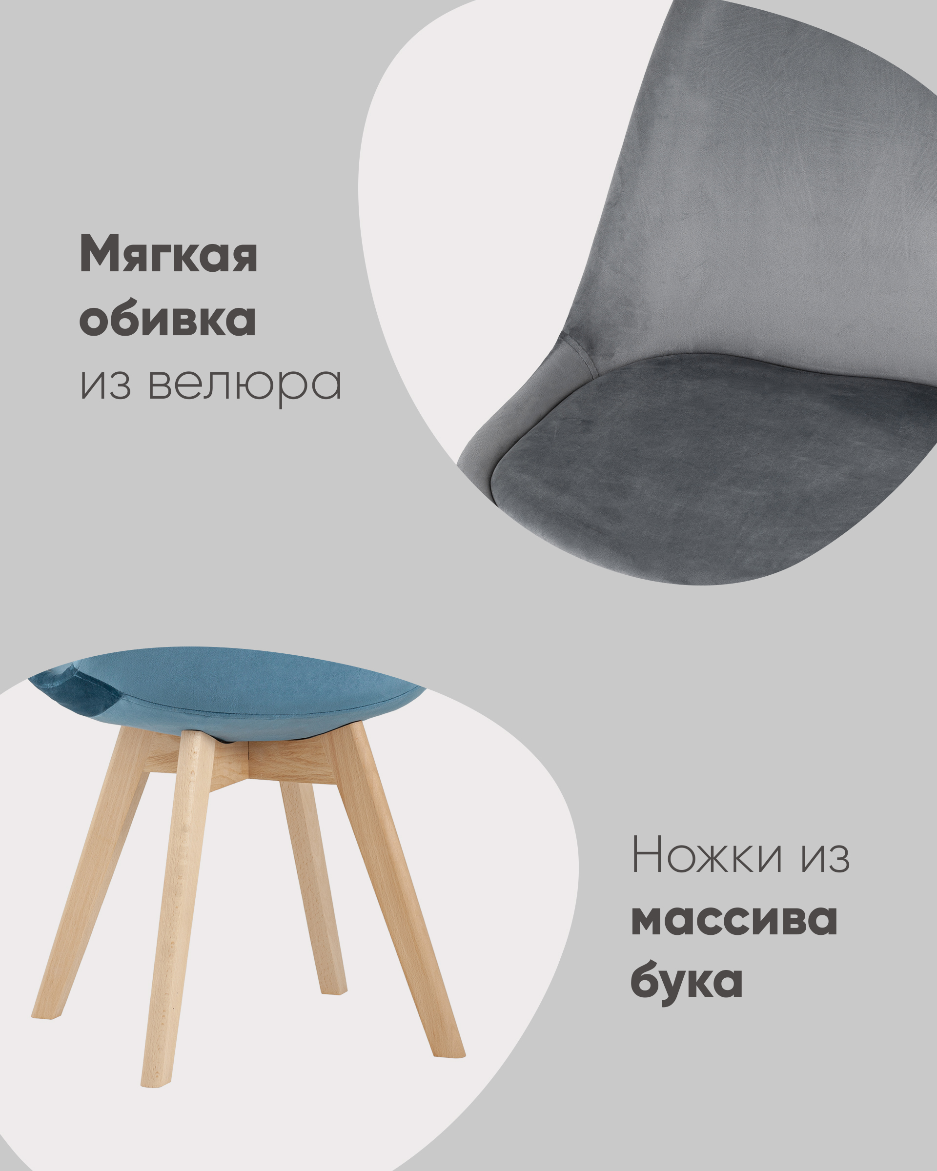 Стул обеденный FRANKFURT обивка велюр ножки массив бука цвет серый.