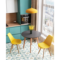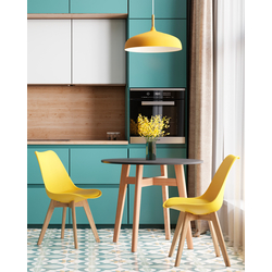 Стул Frankfurt желтый, сиденье из сочетания пластика и экокожи, ножки деревянные.