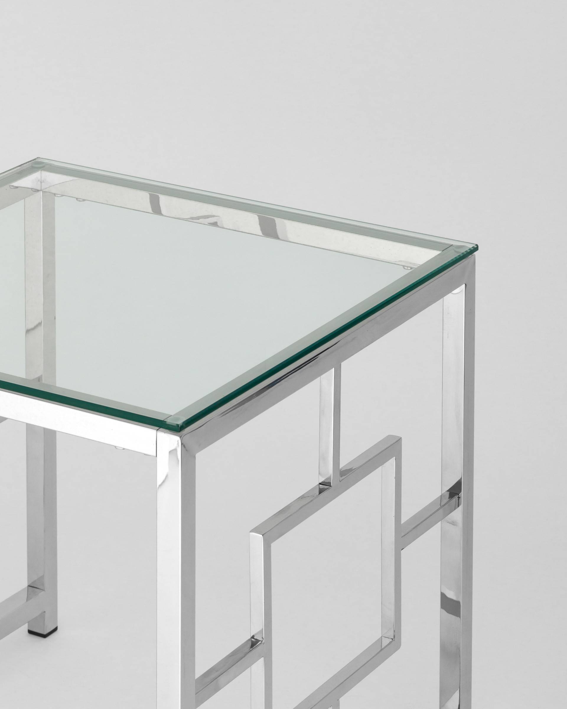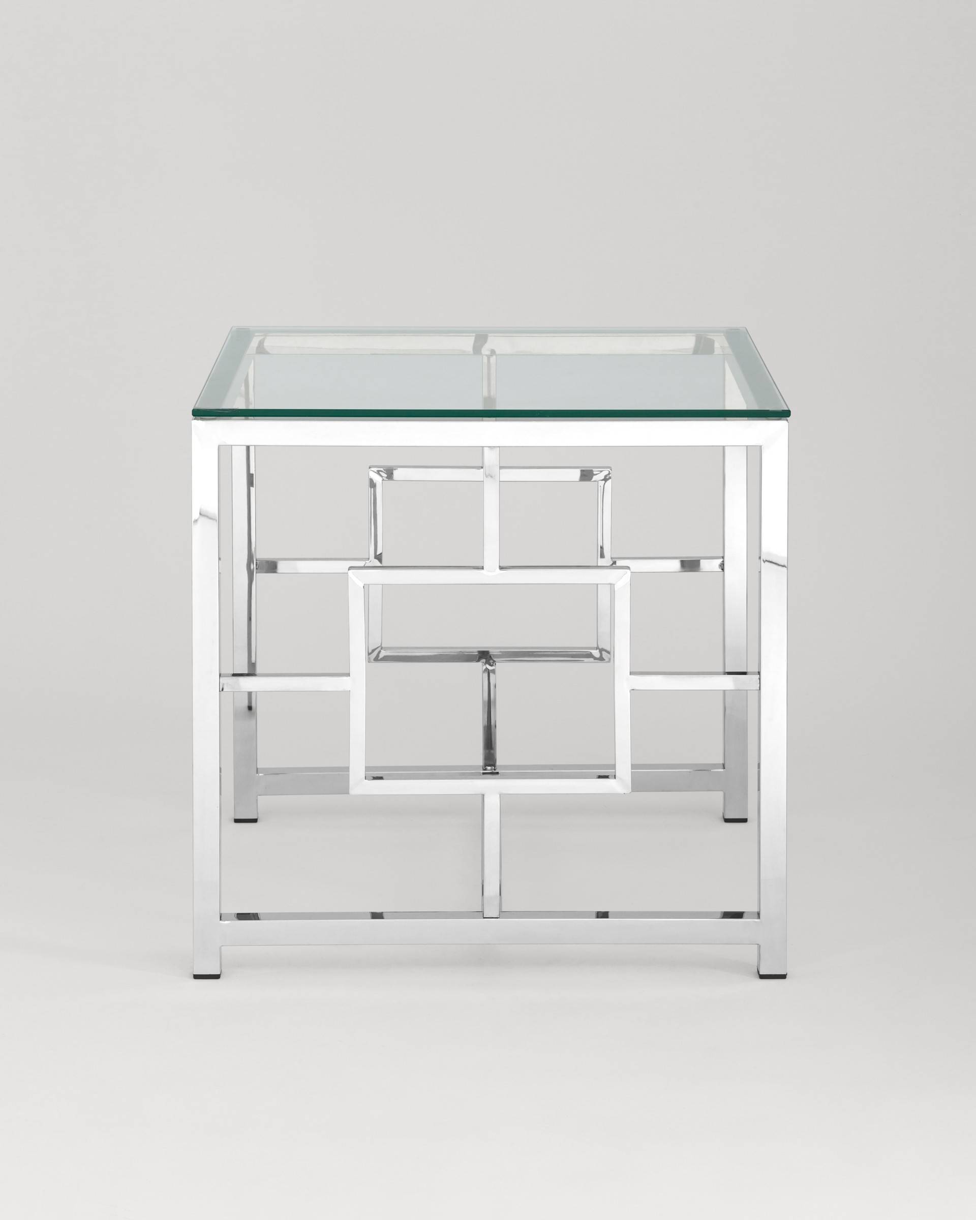 Стол Stool Group журнальный 55*55 БРУКЛИН серебро, каркас нержавеющая сталь, столешница закаленное стекло.