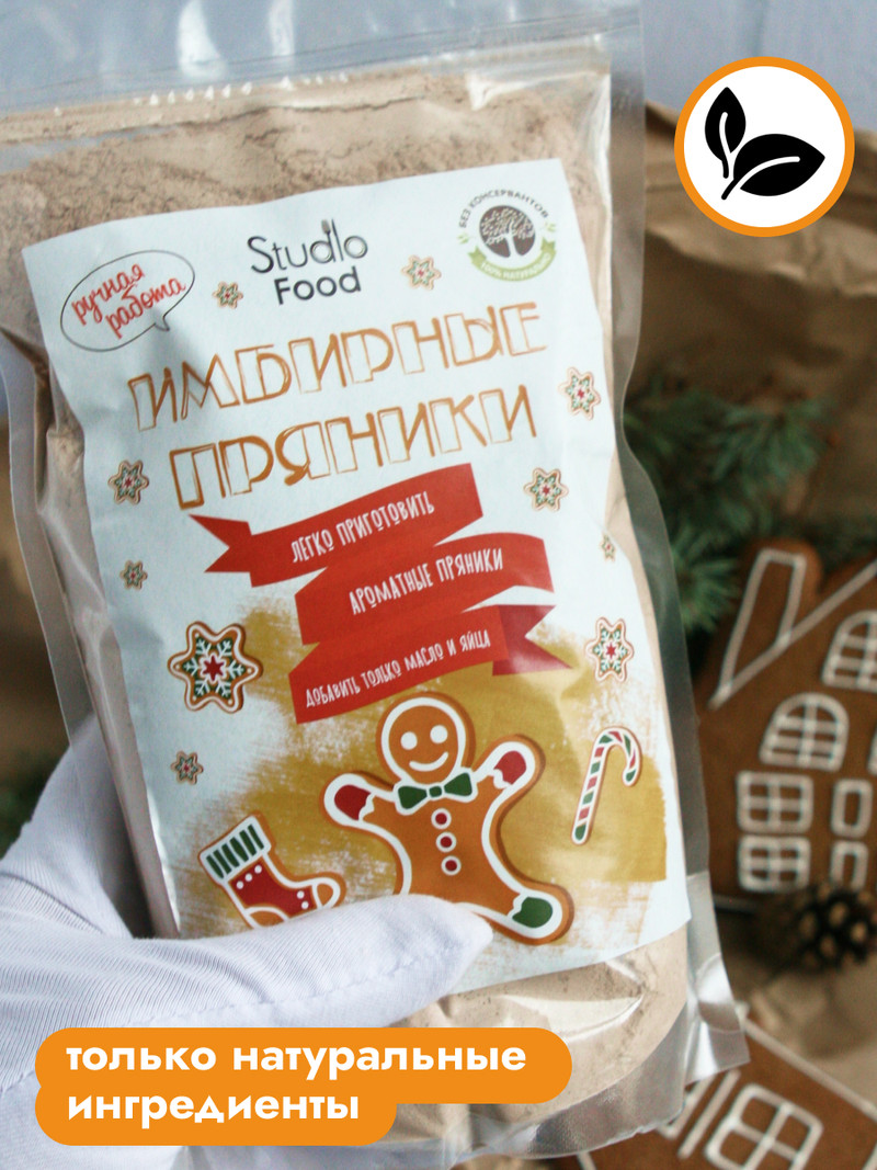 Смесь для приготовления имбирных пряников. Только натуральные ингредиенты, обратите внимание на состав. Нет никаких консервантов или заменителей продуктов. Только качественные ингредиенты в нужной пропорции.- Вам необходимо от себя добавить только масло, мед и яйца. Рецепт составлен так, что все необходимое уже в пакете, включая “сухие духи” набор молотых специй для выпечки имбирных пряников (корица, имбирь, гвоздика, перец молотый, перец душистый, кардамон, мускатный орех).- Мы предлагаем вам наш фирменные рецепт имбирных пряников. Вы можете испечь эти пряники с детьми, печь одно удовольствие. Следуйте инструкции с рецептом и наслаждайтесь своим мастерством. Можно покрыть глазурью.