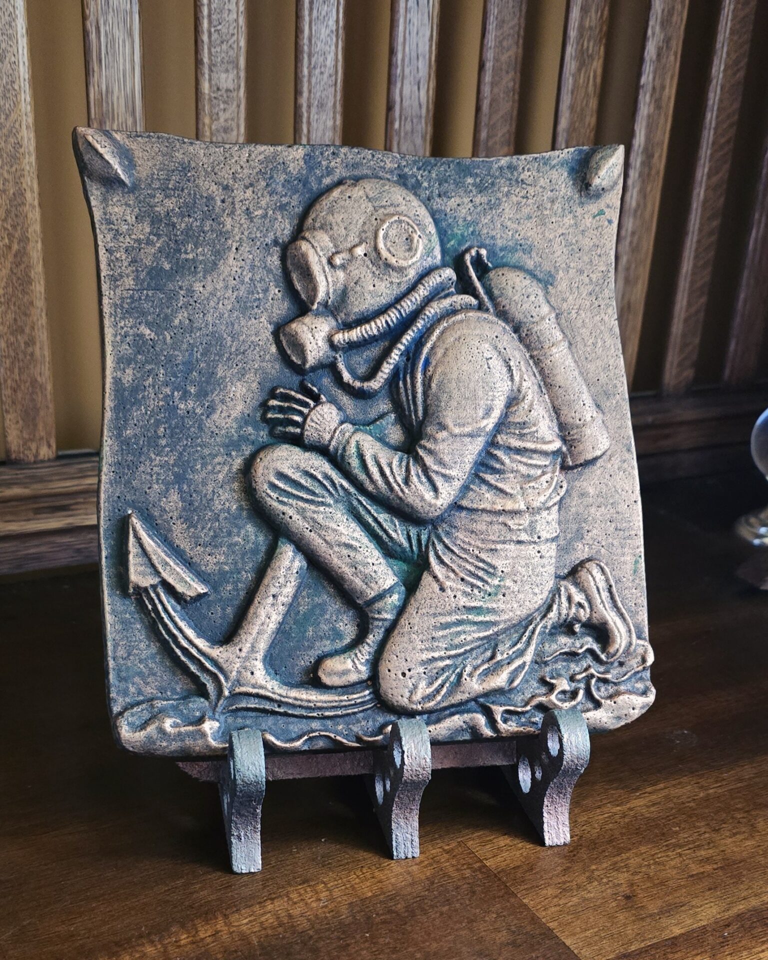 Маленькая картина Аквалангист 08 это авторский декор в морской тематике для вашего дома. Картина выполнена из гипса, в технике скульптурного литья. Объемная фигура аквалангиста отличается высокой детализацией костюма и акваланга для погружения. Рельефное изображение окрашено акриловыми красками с 3D эффектом. Картина имеет удобны подвес и легко крепится на стену. Картина изготовлена из натурального материала. Для окрашивания использовались сертифицированные, экологически безопасные краски.