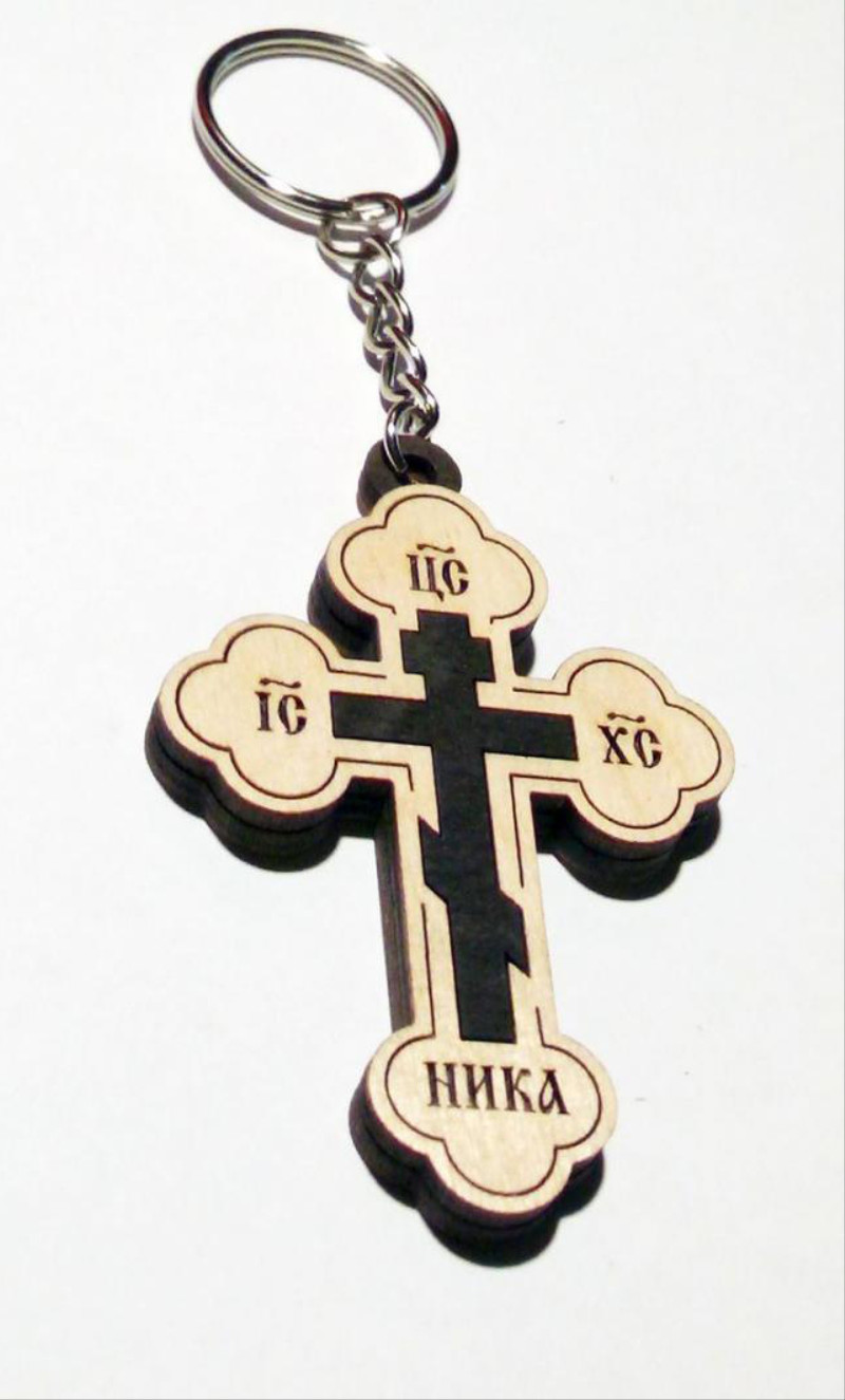 Красивый и символичный брелок из березовой фанеры в два слоя. Изящный крестик с выгравированной надписью “Спаси и сохрани”. Отличный оберег и стильный аксессуар для ключей или сумки. Прекрасный подарок для верующих.