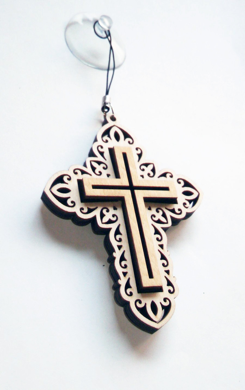 крест прорезной, двухсторонний, выполненный из березовой фанеры в четыре слоя. Этот аксессуар не только украсит ваше лобовое стекло, но и станет символом защиты и благополучия на дороге.