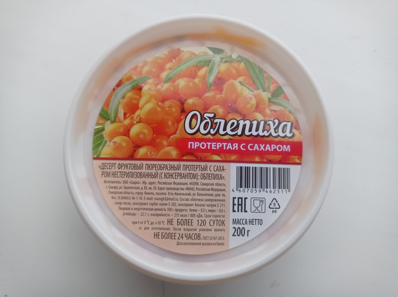 Чтобы купить Облепиха протертая с сахаром оптом по цене 74 руб., свяжитесь с поставщиком. Компания поставщик — Сварог (ООО «Сварог») из города Кинель (Самарская область). Доставка возможна самовывоз, транспортной компанией, автомобилем. Способы оплаты: наличными, безналичная оплата, кредитные карты.