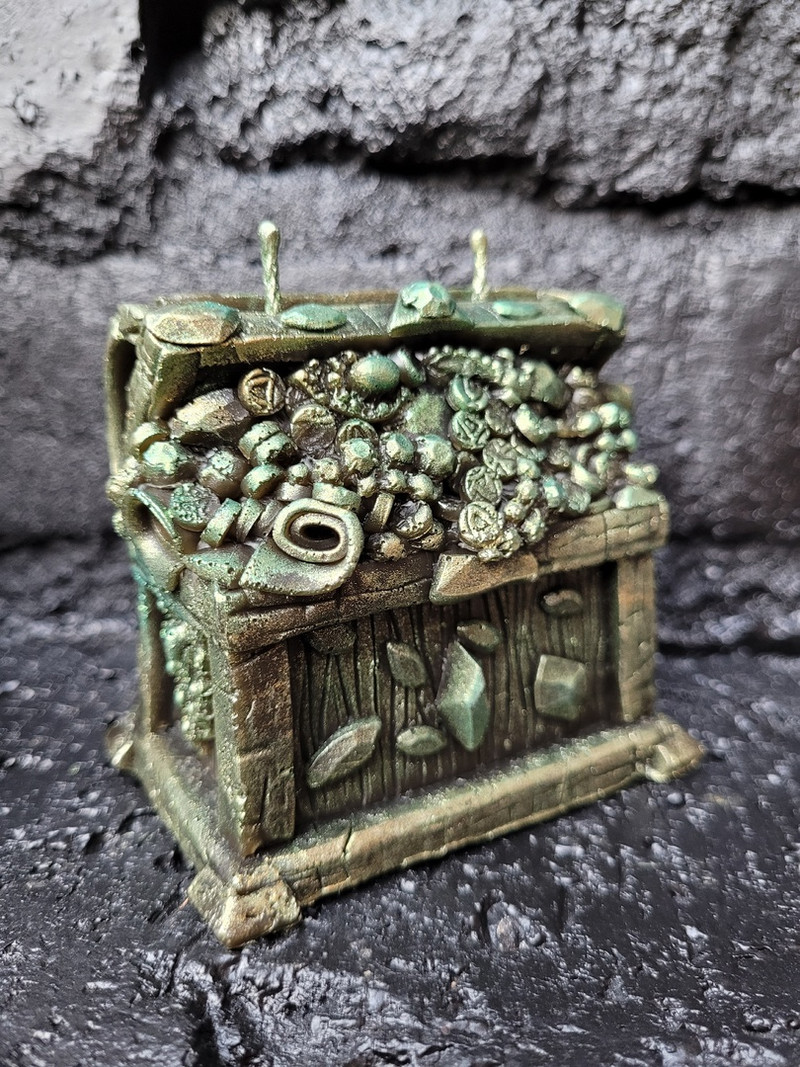 Свеча Сундук — 100% натуральный пчелиный воск. По Вашему желанию можем изготовить в нескольких вариантах цвета воска. Свеча может быть совсем не окрашена, так же и окрашена водорастворимой свечной краской. По согласованию с заказчиком за доп плату — возможно добавление в свечу трав и/или эфирных масел.