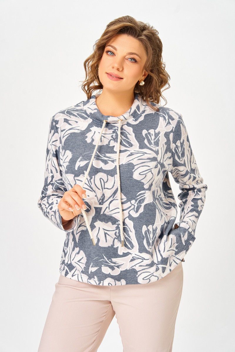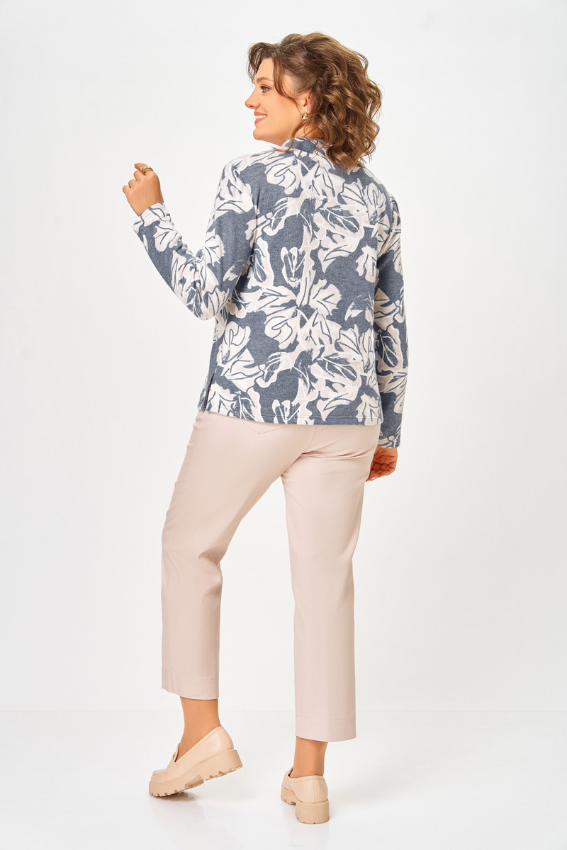 Джемпер из мягкого вискозного трикотажного полотна прямого силуэта, слегка расширен к низу. Перед и спинка цельные, в боковых швах разрезы длиной 11 см.