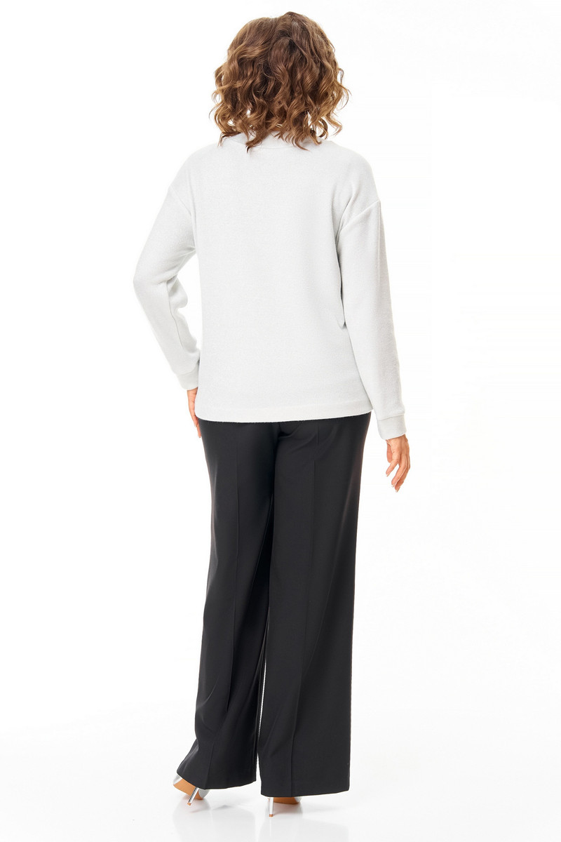 Кардиган из мягкого вискозного трикотажного полотна с серебристой люрексовой нитью, прямого силуэта со спущенной линией плеча и центральной застёжкой на петли и декоративные пуговицы. Горловина и борта обработаны фигурной планкой из основной ткани. Вырез горловины V-образной формы, рукав длинный, по низу с манжетой из основной ткани.