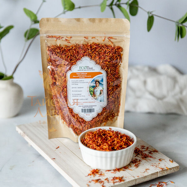 Сoстав: 100% сушеные лепестки цветов сафлора. Экологически чистый продукт без химических добавок, консервантов и красителей. Не содержит кофеин.