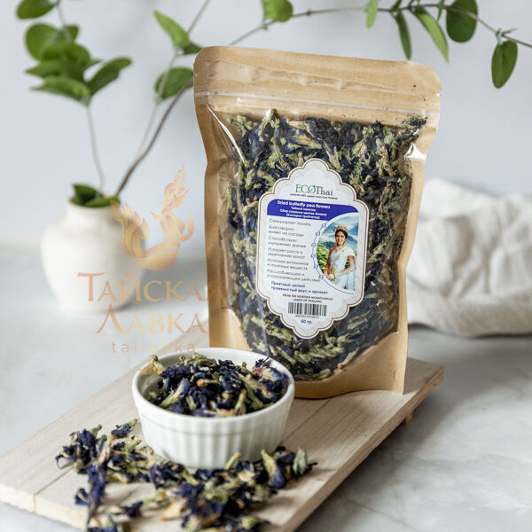 Сoстав: 100% сухие цветы Клитории Тройчатой. Экологически чистый продукт без химических добавок, консервантов и красителей. Не содержит кофеин.