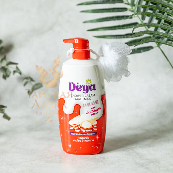 Ь для душа с приятной кремовой консистенцией эффективно очищает кожу от загрязнений и ороговевших частичек, смягчает, увлажняет. Состав содержит коллаген и натуральное козье молоко, которые помогают сохранять коже гладкость и упругость, насыщают витаминами и ценными микроэлементами, избавляют кожу от сухости и шелушений, тонизируют и придают шелковистость.