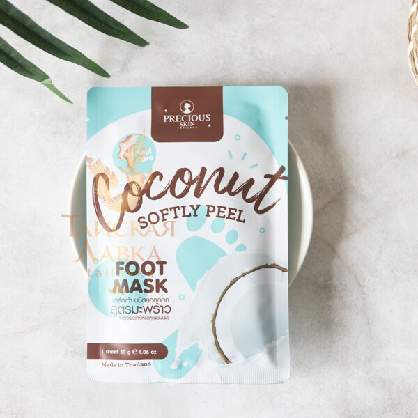 Облегчить процедуру домашнего педикюра и сделать ее быстрой и простой вам помогут носочки для пилинга с кокосовым маслом. Быстро и бережно размягчают мозоли, натоптыши и огрубевшую кожу на ступнях и пальцах ног, отшелушивают мертвые клетки, активно увлажняют кожу и напитывают ее витаминами. Активные компоненты: мочевина, витамин В3, мед, гиалуроновая кислота, коллаген, кокосовое масло, экстракт женьшеня.