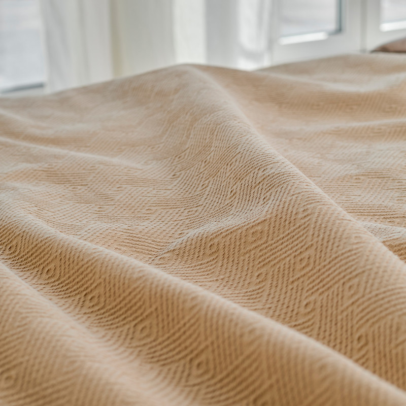 Элегантный дизайн и универсальный цвет покрывала легко вписываются в различные стили интерьера, придавая уюта и тепла комнате. Это покрывало не только украсит пространство, но и защитит мебель от пыли и загрязнений. Идеальный выбор для людей, ценящих натуральные материалы и уют.