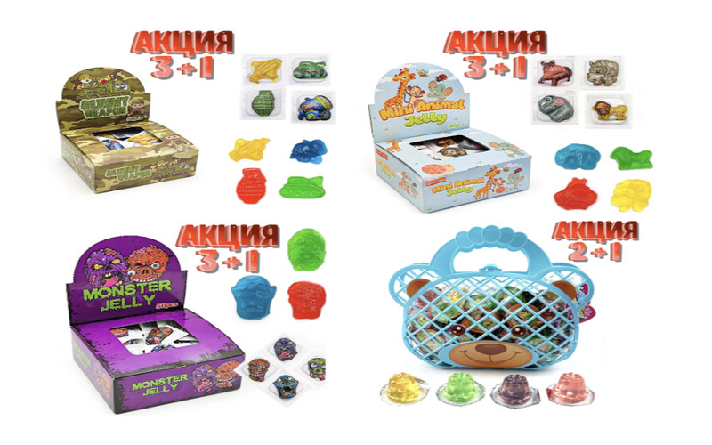Теперь Желе Мини «Арсенал», «Зоопарк», «Монстр» и Желе в «Детская сумочка» стали ещё доступнее.