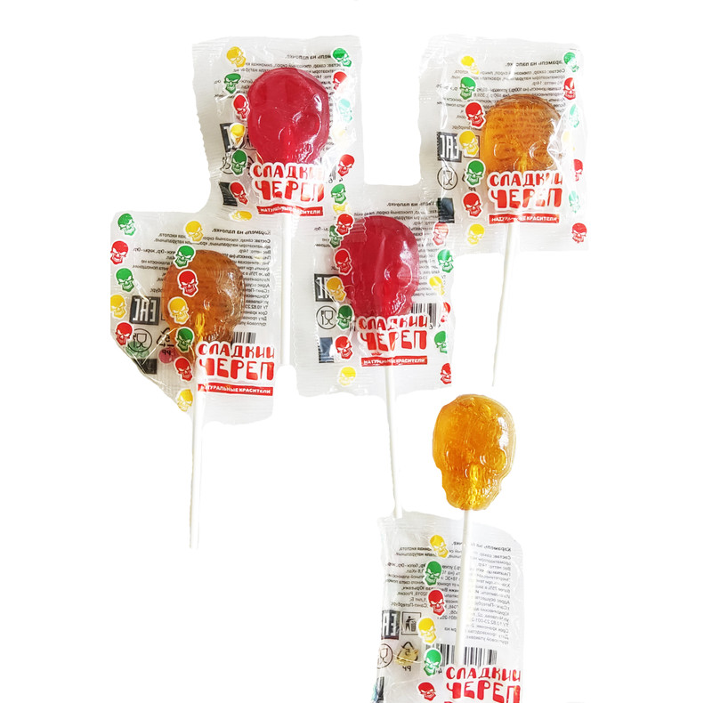 Каждый “Череп” упакован в индивидуальную обёртку, что делает продукт гигиеничным, удобным для продажи и раздачи. Леденцы представлены в трёх привлекательных цветах — золотистом, оранжевом и красном. Такие яркие леденцы эффектно смотрятся на витрине, в подарочных наборах и на сладком столе, привлекая внимание покупателей и создавая атмосферу праздника.