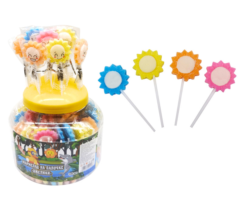 Мармелад на палочке “Солнышко” 8*100*10гр — изготавливается в Китае по нашему заказу. Технология использования проверена временем — только качественные ингредиенты и натуральные красители.
