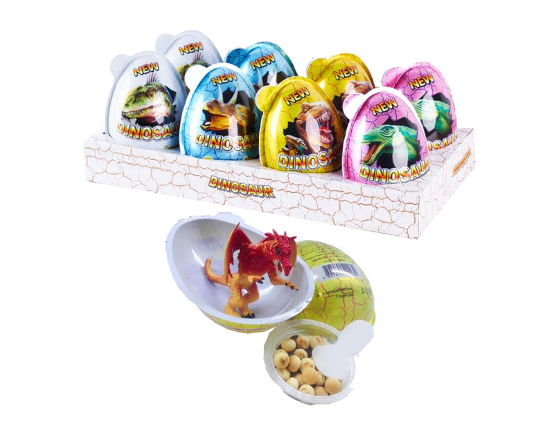 Пластиковое яйцо с карамелью и игрушкой “Динозавры” 4*8*15г нашего производства. “Динозавры” - это замечательная серия игрушек, в яйце-сюрпризе очень нравится детям, ведь всегда так интересно, какая игрушка попадется на этот раз. Каждая новая игрушка вызывает море положительных эмоций у ребенка.