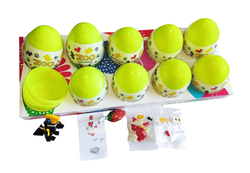 В комплекте закрытое яйцо-сюрприз со сборной игрушкой “ZOO”