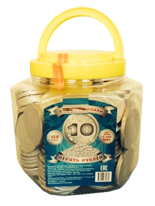Каждая шоколадная монета упакована в индивидуальную фольгу, что делает продукт гигиеничным, удобным для продажи и раздачи. Такая яркая фольга на шоколадных монетах “10 рублей” эффектно смотрятся на витрине, в подарочных наборах и на сладком столе, привлекая внимание покупателей и создавая атмосферу праздника.
