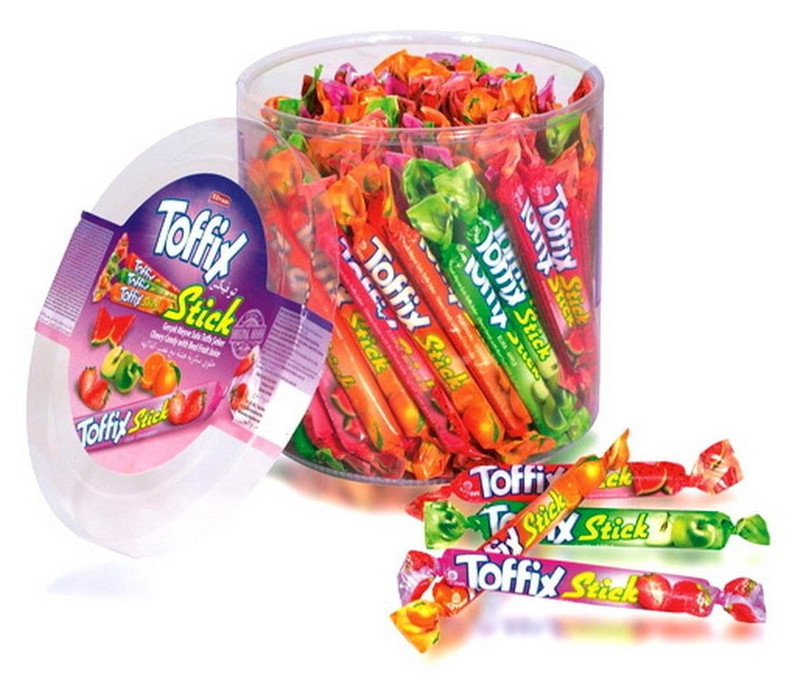Жевательная конфета “Toffix Stick” 8*120*6,7 г — вкуснейшая жевательная конфета, всемирно известного Турецкого бренда Elvan, которая сочетает в себе вкус жевательной резинки и конфеты. Жевательные изготовлены с добавлением натурального сока, что делает их особенно привлекательными для настоящих ценителей, конфеты представлены ассорти вкусов: Яблоко, Кола, Арбуз, Тутти-Фрутти и Апельсин.